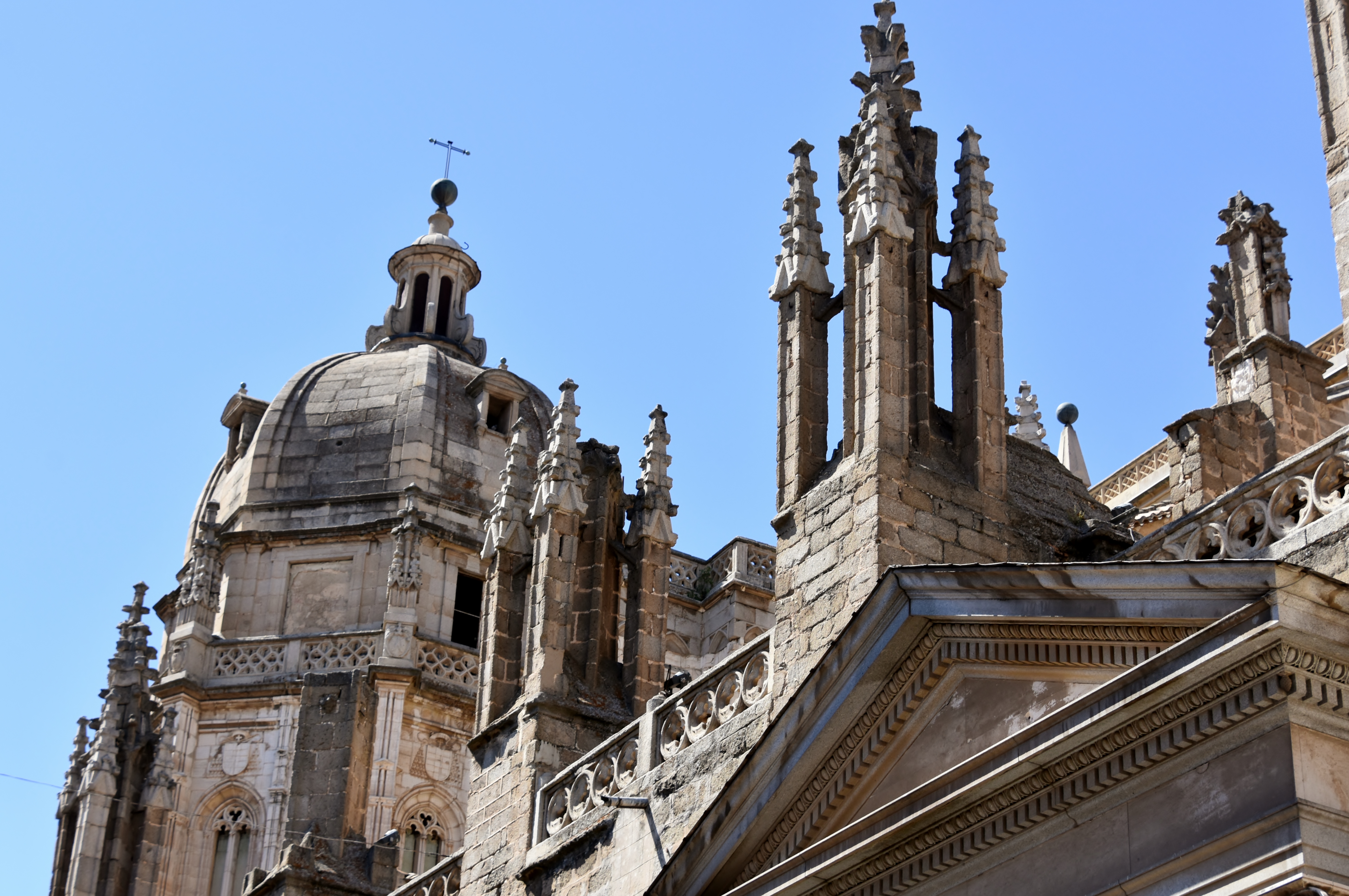 톨레도 대성당의 외부는 주 정면, 여러 개의 문, 탑 등으로 구성되어 있다.