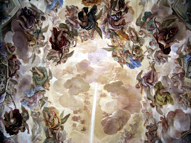 예배당 내부는 두 부분으로 장식되었다. 처마 장식에서 천장까지는 사도신경이 14개 장면으로, 처마 장식 아래쪽에는 최후의 심판과 성자들의 삶을 그린 장면들이 있다. 게라르도 스타르니나와 니콜라스 데 안토니오 등 피렌체 화가들의 작품으로 추정되나, 작가가 명확하게 밝혀지지는 않았다. 과도한 습기와 부적절한 복원으로 인해 바닥에 가까운 그림들은 심하게 손상되어 일부는 복구가 불가능하다.[9]