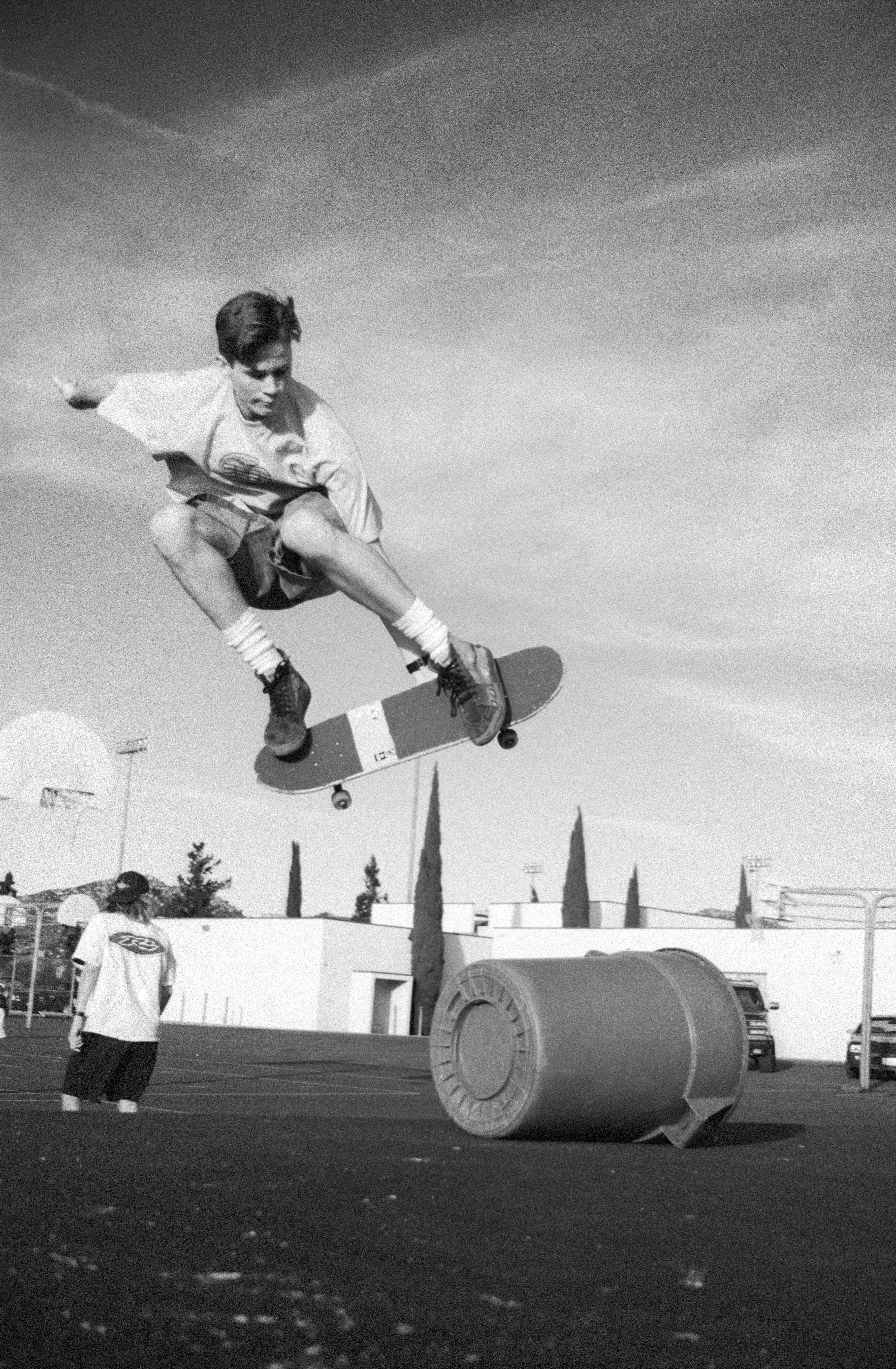 델론지는 3학년 때 처음 스케이트보드를 타기 시작하여,[10] 학교 밖에서 대부분의 시간을 스케이트보드를 타는 데 쏟았다. 델론지는 "나는 스케이트보드를 하며 살고, 먹고, 숨 쉬었다. 하루 종일 스케이트보드만 탔다. 그것이 내가 유일하게 신경 쓰는 것이었다."라고 회상했다. 델론지와 그의 친구들은 샌디에이고의 한쪽 끝에서 다른 쪽 끝까지 스케이트보드를 타며 사람들을 골탕 먹이곤 했다. 델론지는 평범한 학생이었으며, "나는 학교에서 얼마나 열심히 해야 하는지 정확히 알고 있었다. C를 받는 한, B를 받기 위해 1분이라도 더 노력하지 않을 것이다. 나는 스케이트보드와 음악에만 관심이 있었다."라고 말했다.[6]