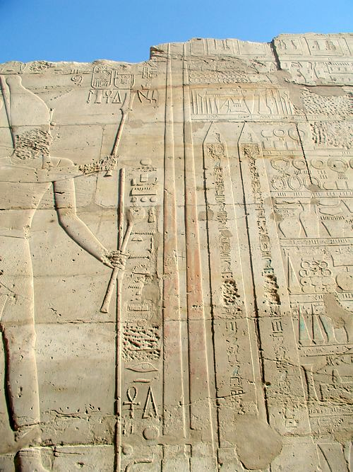 이러한 원정 기록은 카르나크의 아문 신전 벽(우르쿤덴 IV)에 "투트모세 3세 연대기"로 새겨져 전해지며,[100] 그의 왕실 서기관이자 군 사령관이었던 타누니가 기록한 내용도 중요한 자료가 된다.[27] 투트모세 3세의 성공적인 정복 활동에는 여러 요인이 작용했다. 히크소스와의 전쟁 과정에서 습득한 말이 끄는 전차와 같은 발전된 군사 기술을 적극 활용했으며,[27] 당시 주변 왕국들의 저항이 비교적 약했던 점도 영토 확장에 유리하게 작용했다.[27] 또한 육상으로 배를 운반하는 혁신적인 전술도 사용했다.[27] 그의 원정은 단순한 정복을 넘어 조공 징수를 위한 무력 시위의 성격도 포함했다.[100]