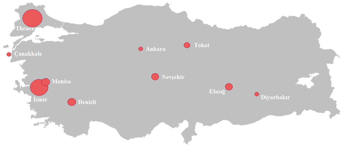고추 | 크르미즈 비베르, 풀 비베르 | 수프 고명, 만티, 아다나 케밥 | [11][12] |