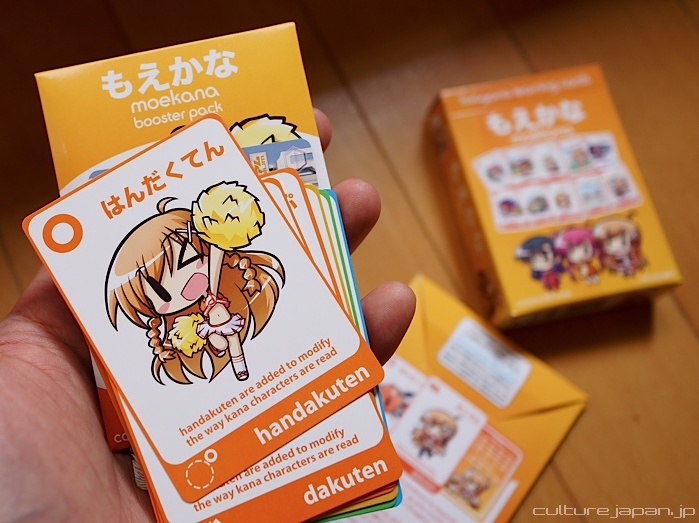 9장의 추가 카드가 들어있는 ''모에카나'' 교육용 카드 게임의 카드 부스터 팩