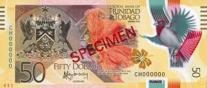 2012년에는 트리니다드 토바고 독립 50주년을 기념하기 위해 50달러 지폐가 재발행되었다. 지폐 앞면에는 붉은모자 카디널 새와 국가 문장 중앙 주변에 기념 문구가 있다.[9]