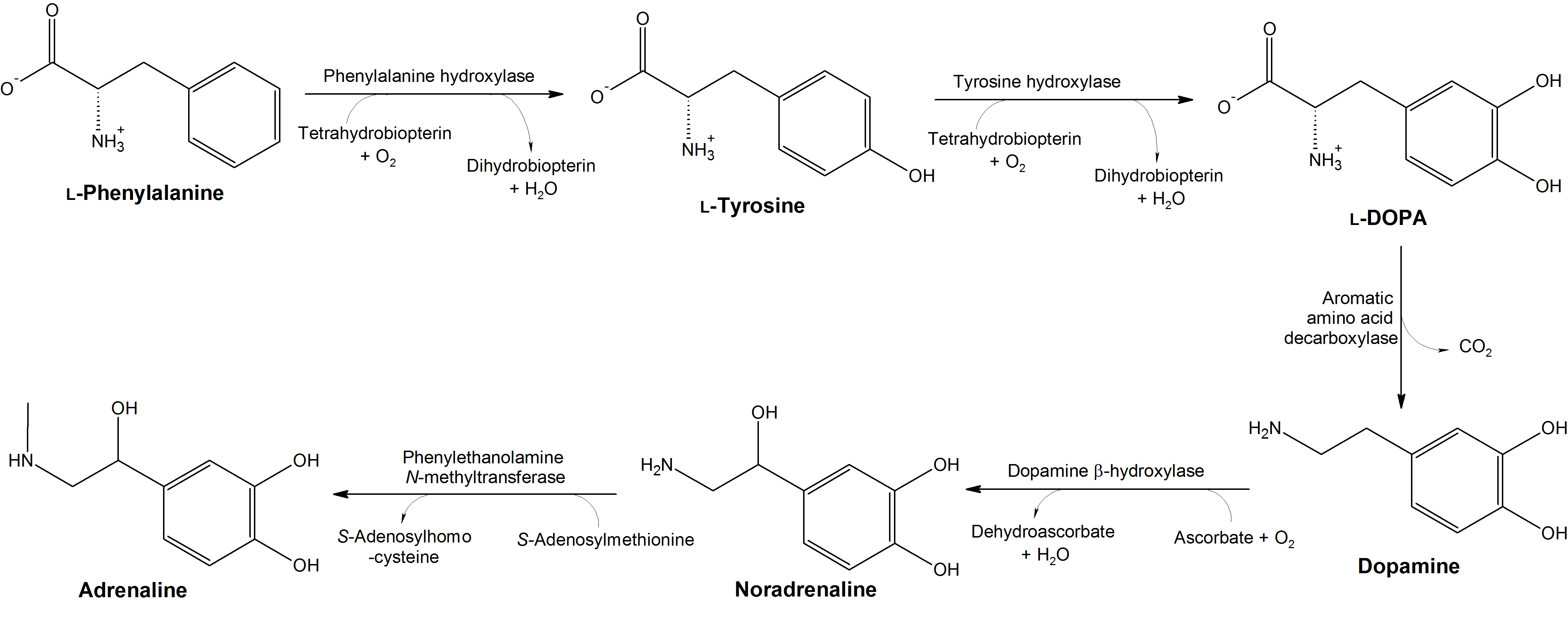 :EC 1.14.16.1 L-Phe + 테트라하이드로바이오프테린 + O2 → L-Tyr + 4a-히드록시테트라하이드로바이오프테린[1]