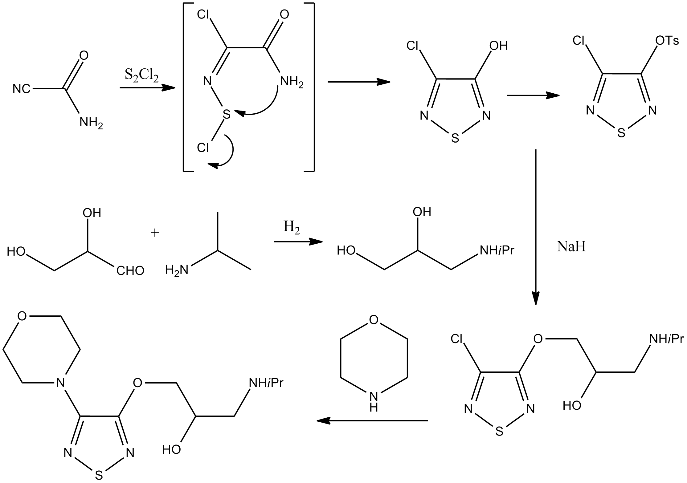 | IUPAC 명명법 | (S)-1-(tert-부틸아미노)-3-[(4-모폴린-4-일-1,2,5-티아디아졸-3-일)옥시]프로판-2-올 |