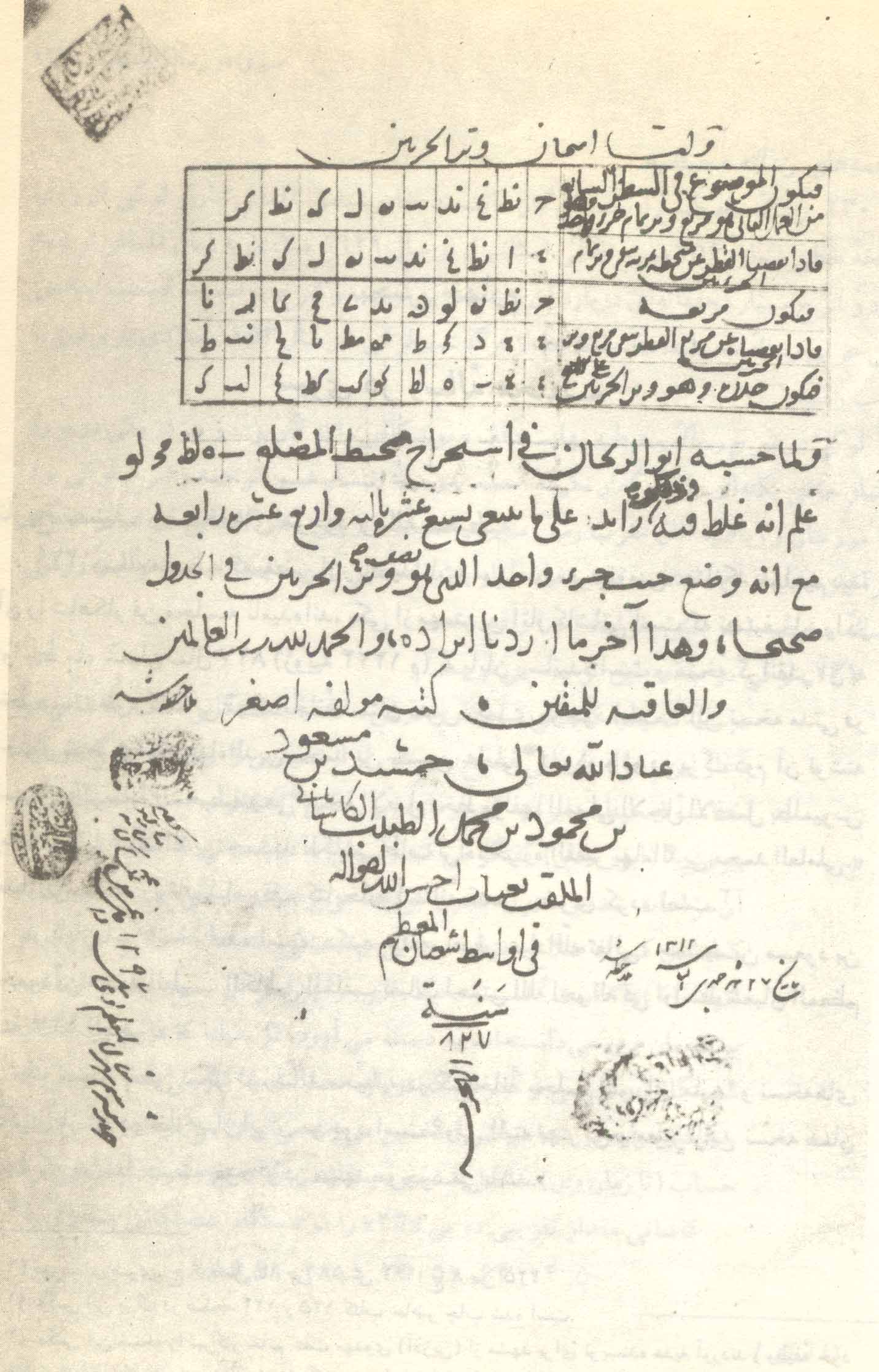 잠쉬드 알 카시는 티무르 제국 시대에 활동한 저명한 수학 및 천문학 분야 학자였다. 그는 샤 루흐와 가우하르 샤드의 궁정에서 다양한 분야를 연구하고 그 결과를 기록으로 남겼다.[17]울루그 베그 통치 시기 티무르 제국의 과학 발전은 정점에 달했다. 알 카시는 사인 함수 값을 육십진법으로 소수점 아래 4자리까지 정확하게 계산하고, 각도에 따른 변화와 차이를 상세히 기록했다. 그는 황도 좌표계와 적도 좌표계 간 변환표를 제작했으며,[33] 술람 앗 사마를 저술하여 지구, 달, 태양, 별 등 천체 간 거리와 크기 결정 문제를 해결하는 데 기여했다.