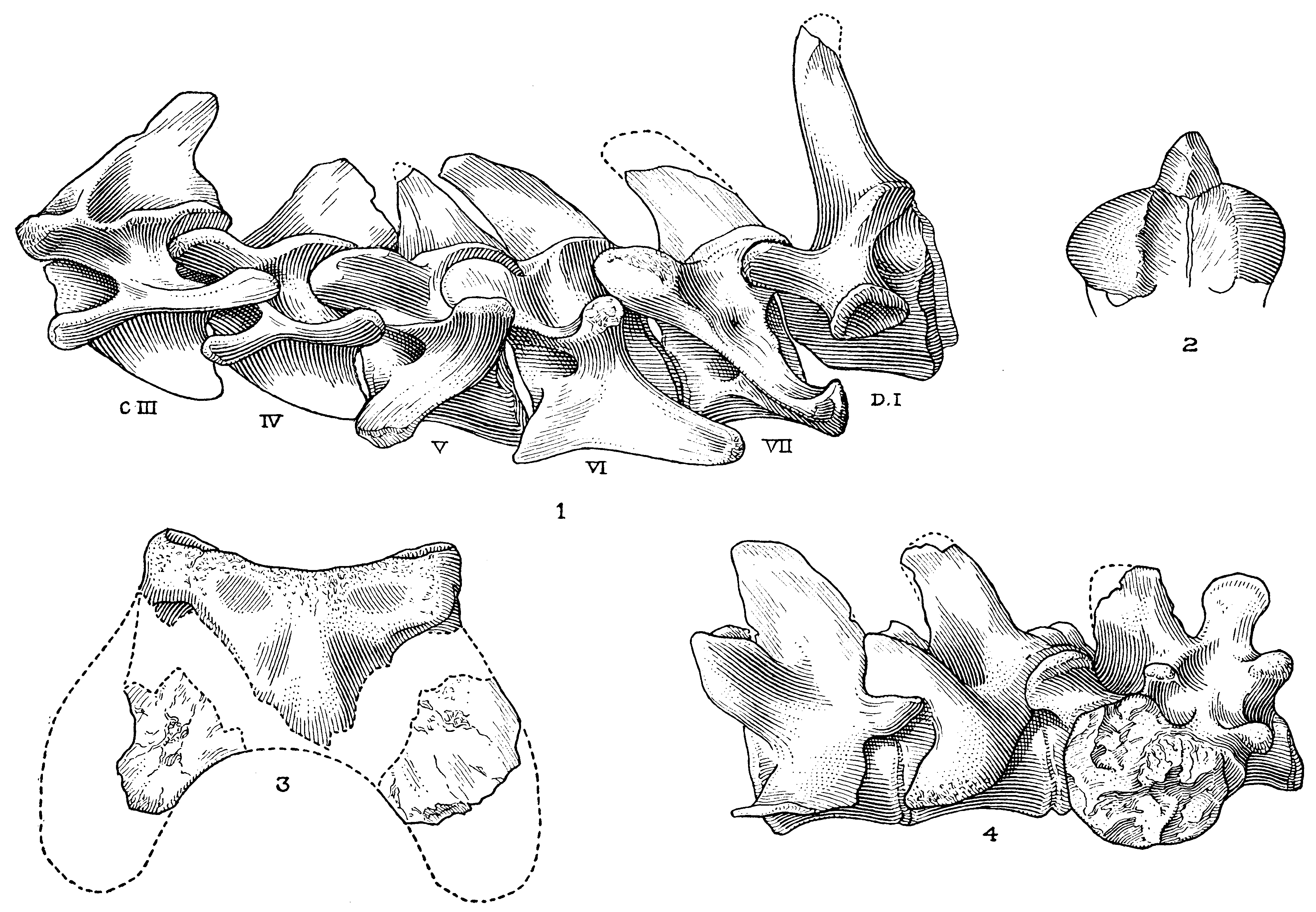 목뼈는 매우 튼튼하며, 어느 정도 마카이로두스아과의 척추뼈와 유사했다.[14] 목뼈에는 신경 돌기가 잘 발달했고, 일부에서는 복부 돌기도 나타나는데, 이는 다른 보르하이엔과에서 특징적으로 나타나는 요소이다. 또한 근육 부착점이 발달하여 머리를 강력하게 움직일 수 있었을 것으로 보인다. 허리뼈는 짧고 ''프로틸라키누스''보다 더 뻣뻣했다.