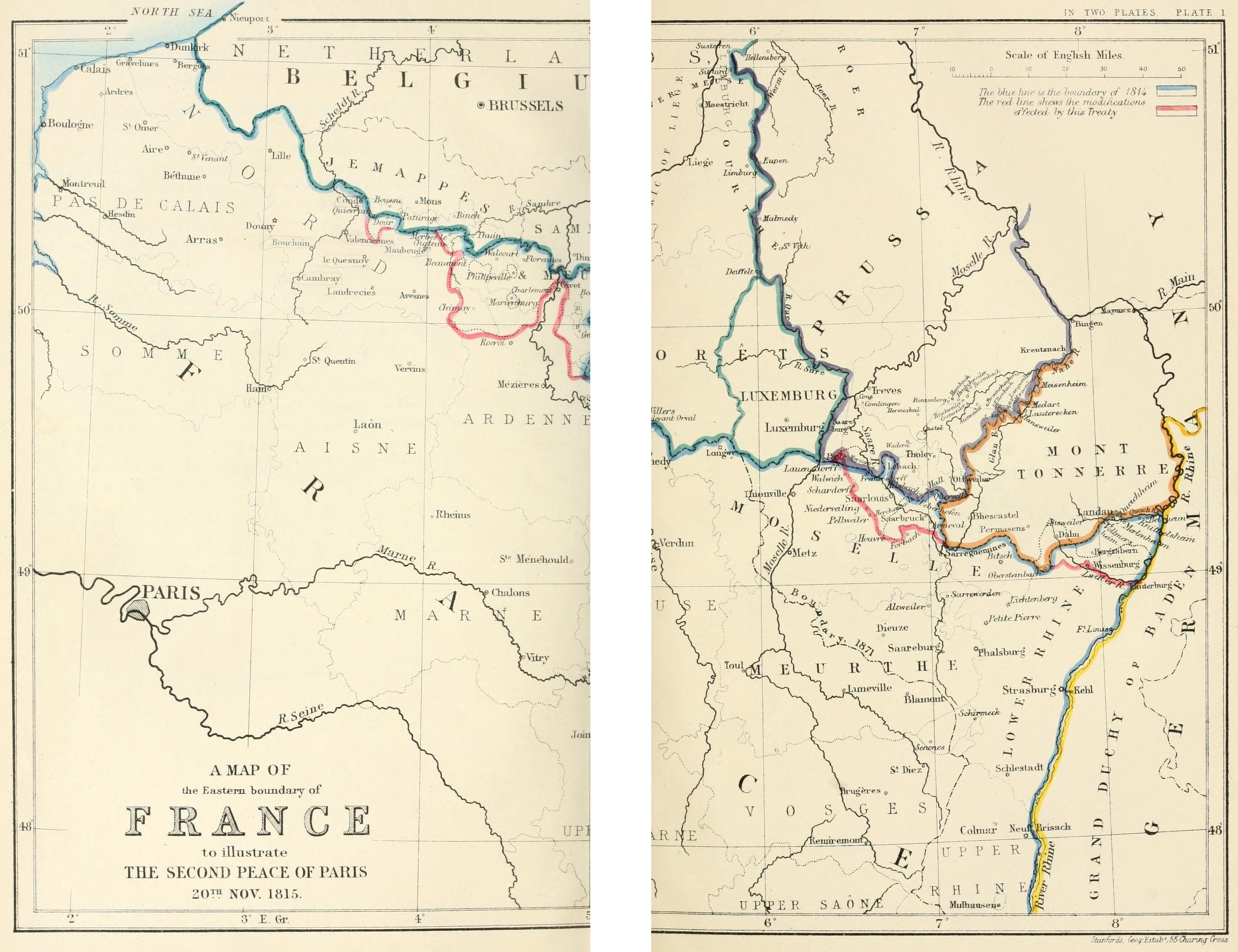 1815년 11월 20일 제2차 파리 조약을 설명하는 프랑스 동쪽 경계 지도