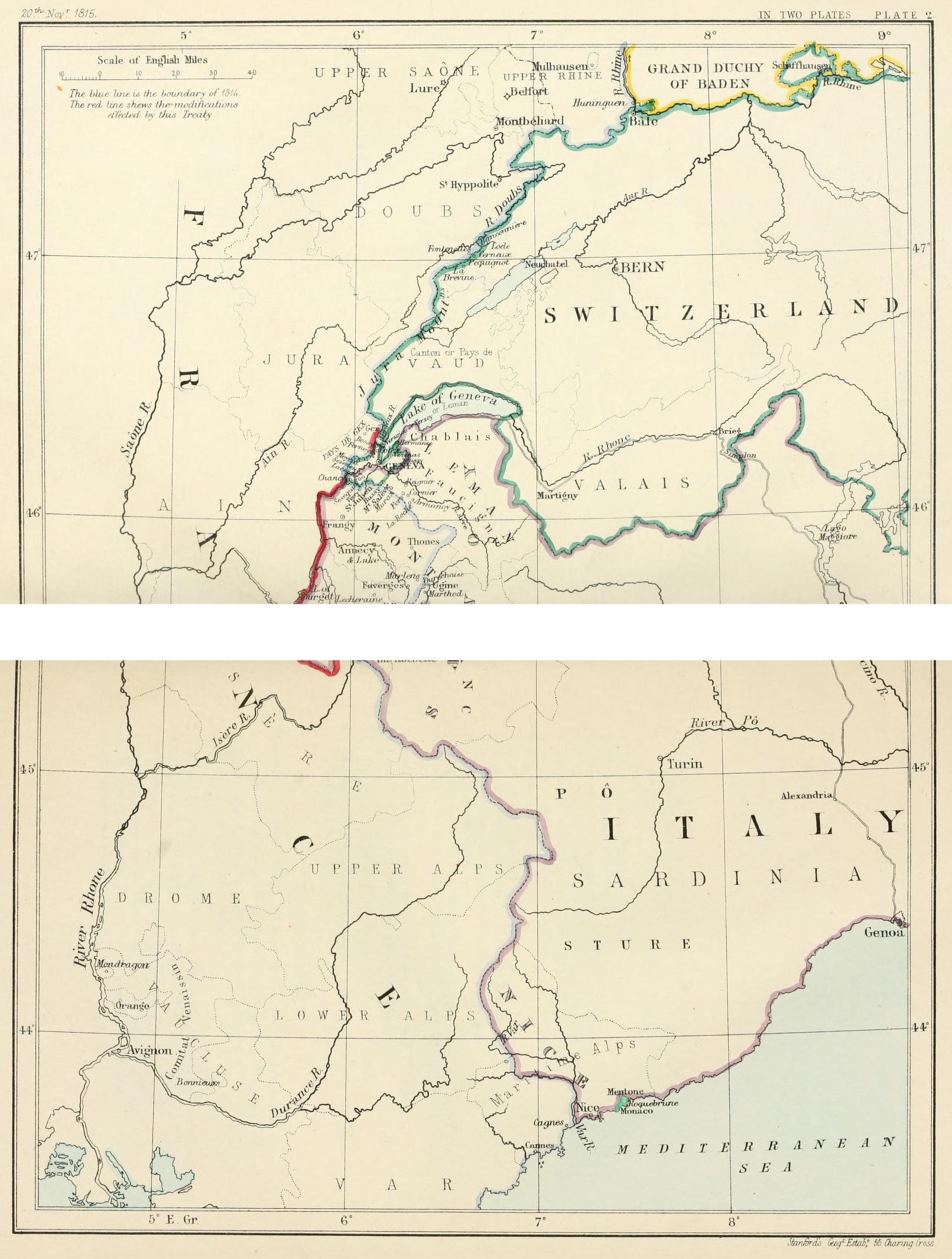 1815년 파리 조약 이후 프랑스의 동남부 국경