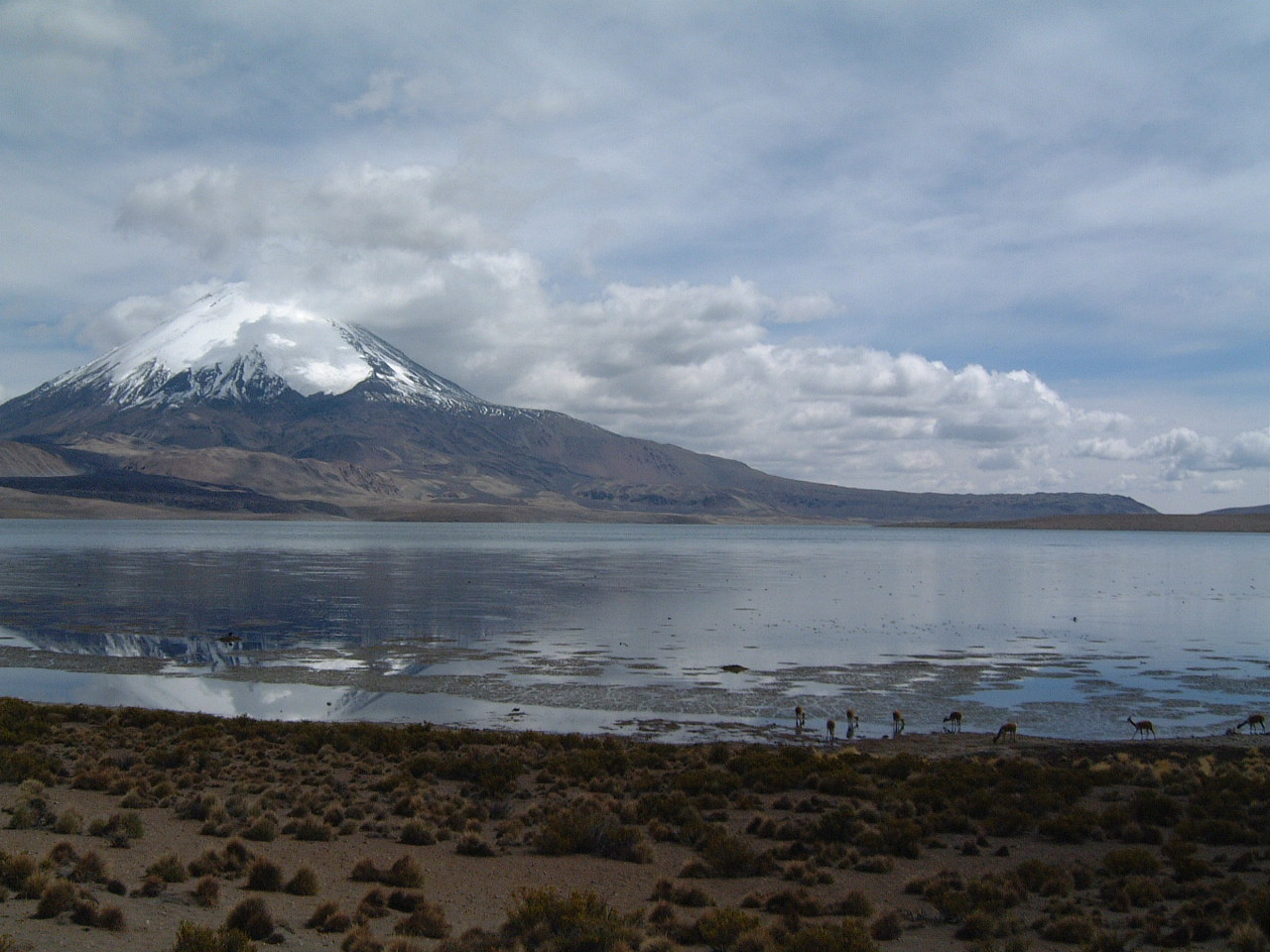 안데스 산맥은 위도와 고도에 따라 다양한 기후를 보이기 때문에 식생도 지역에 따라 다르다. 파리나코타 지역의 3400m에서 4600m 고도에서는 ''Baccharis incarum'', ''Baccharis tola'', ''Fabiana densa''와 같은 관목 스텝으로 식생이 형성된다. 우점종은 ''Deyuexia breviaristata'', ''Festuca orthophylla'', ''Parastrephia lucida'' 및 ''Parastrphia quadrangularis''이다. 우기에는 이 식생에 초본 식물이 더해진다. 4000m 이상에서는 풀 식생이 우세하며, 바위 지대에서는 가끔 ''Azorella compacta''와 같은 쿠션 식물로 바뀐다. 이 식물의 노란색은 특징적이며 멀리서도 볼 수 있다. 이 유형의 사막 및 건조 관목 지대는 "푸나 초원"이라고도 알려져 있다. 초본과 관목은 5200m의 고도까지 자란다. ''Polylepis tarapacana''는 높은 고도(최대 5100m)에서 발견되는 유일한 진정한 나무이며 작은 숲을 형성한다. 물 가까이에는 ''bofedal'' 습지와 같은 식생이 우세하며, ''Oxychloe andina''가 우점종이다. 푸나 고유종으로는 ''Chilotrichiops'', ''Lampaya'', ''Parastrephia'' 및 ''Oreocerus''가 있다.식생 구역 | 종 |