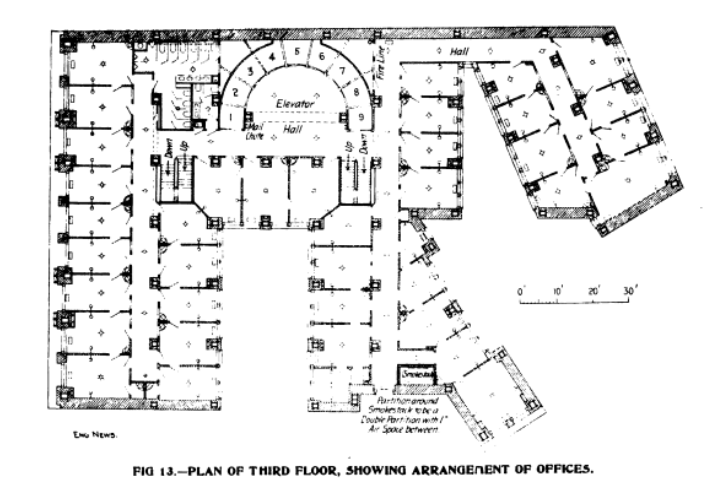 950개의 개별 사무실을 가지고 있었으며, 각 사무실은 4인실로, 업무일마다 약 25,000명이 이 빌딩을 통과하는 것으로 추정된다. 완공 이후 하루 약 4,000명이 이곳에서 일했다.[118] 인터보로 래피드 트랜짓(IRT) 지하철의 첫 번째 본사[119]와 창업 당시 AP 통신의 첫 번째 사무실[114]이 이 빌딩에 있었다.