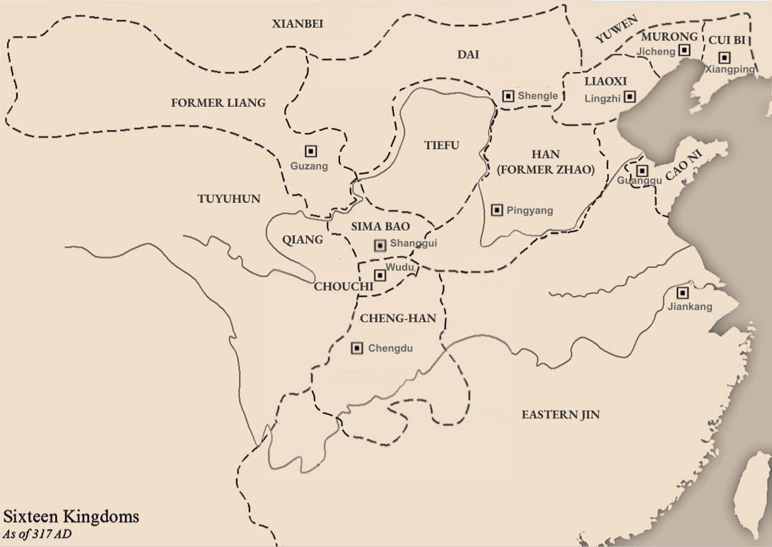 304년 흉노가 세운 국가인 한나라(훗날의 전조)의 황제 유총이 서진의 수도 낙양을 점령하여(영가의 난) 민제를 죽임으로써 서진은 멸망하였다. 이것이 시발점이 되어, 북방 이민족들이 침입해 오면서 화북지방은 오호십육국 시대로 접어들게 되고 거대한 전장터로 발전하게 되었다.[1]