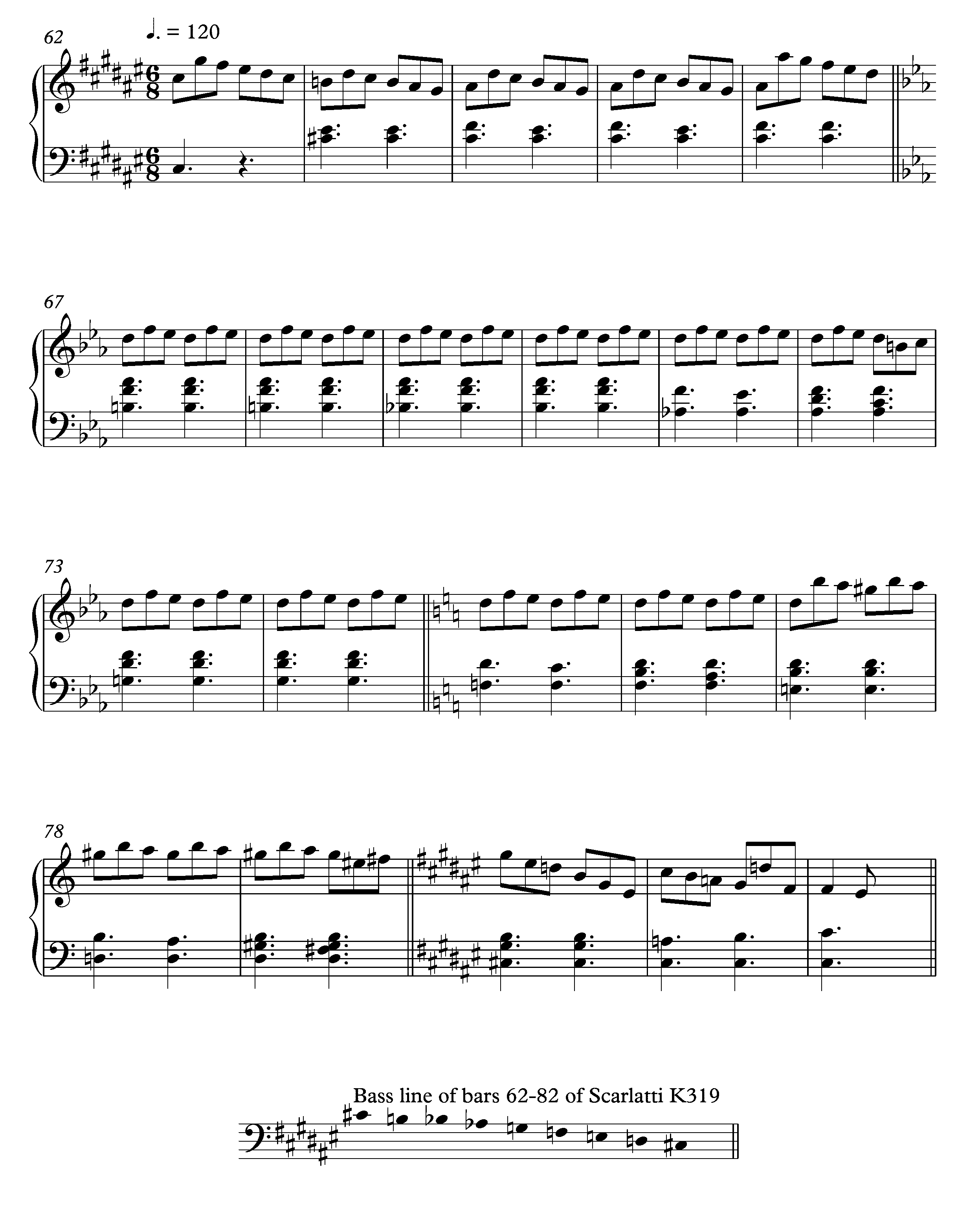 J. S. 바흐의 영국 모음곡 3번에서도 팔음음계의 예시를 확인할 수 있다.[4]