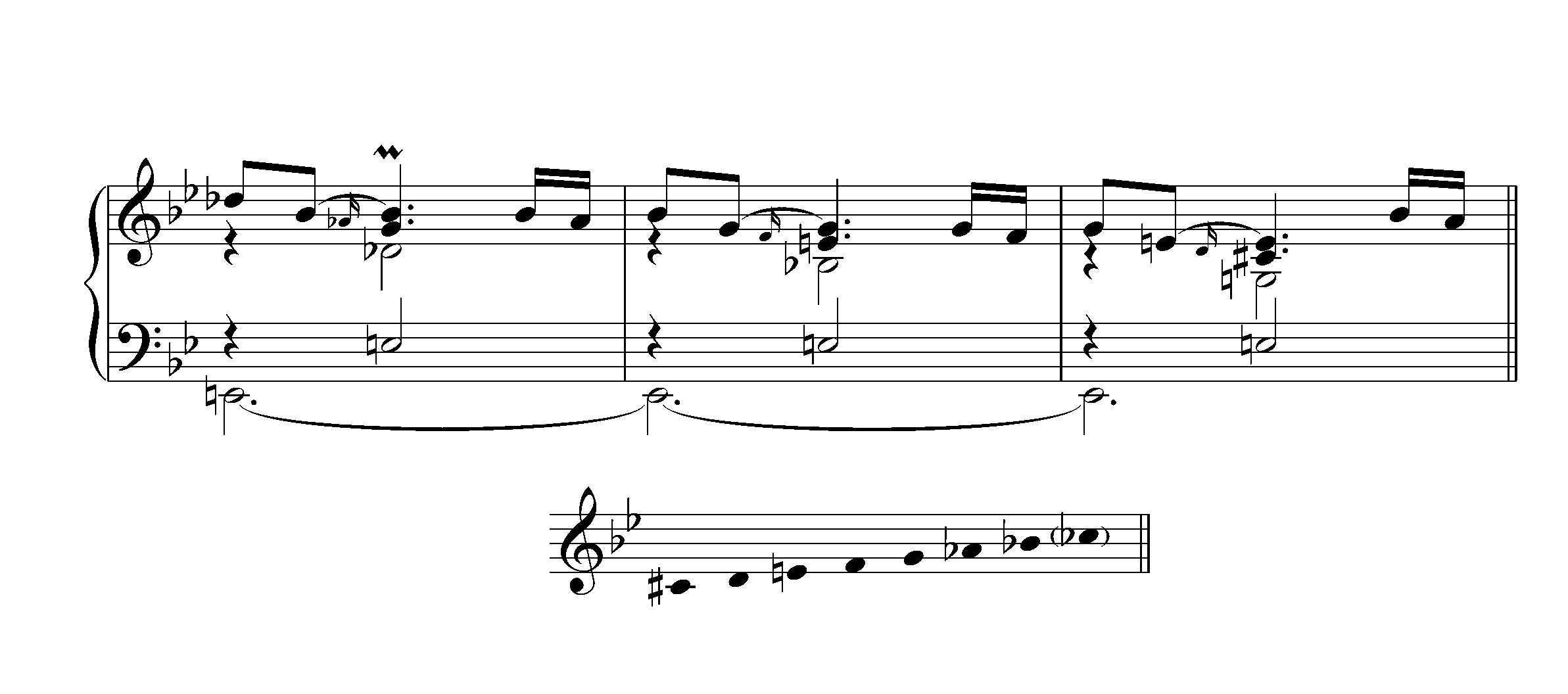- E♭ F [G♭] A♭ [A♮] B [C] D (E♭)