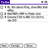 | 2.0 | 1997년 3월 10일 | TCP/IP 네트워크, 네트워크 핫싱크, 디스플레이 백라이트 지원, 메일, 지출 애플리케이션 추가 | 팜 파일럿 개인용 및 전문가용 |