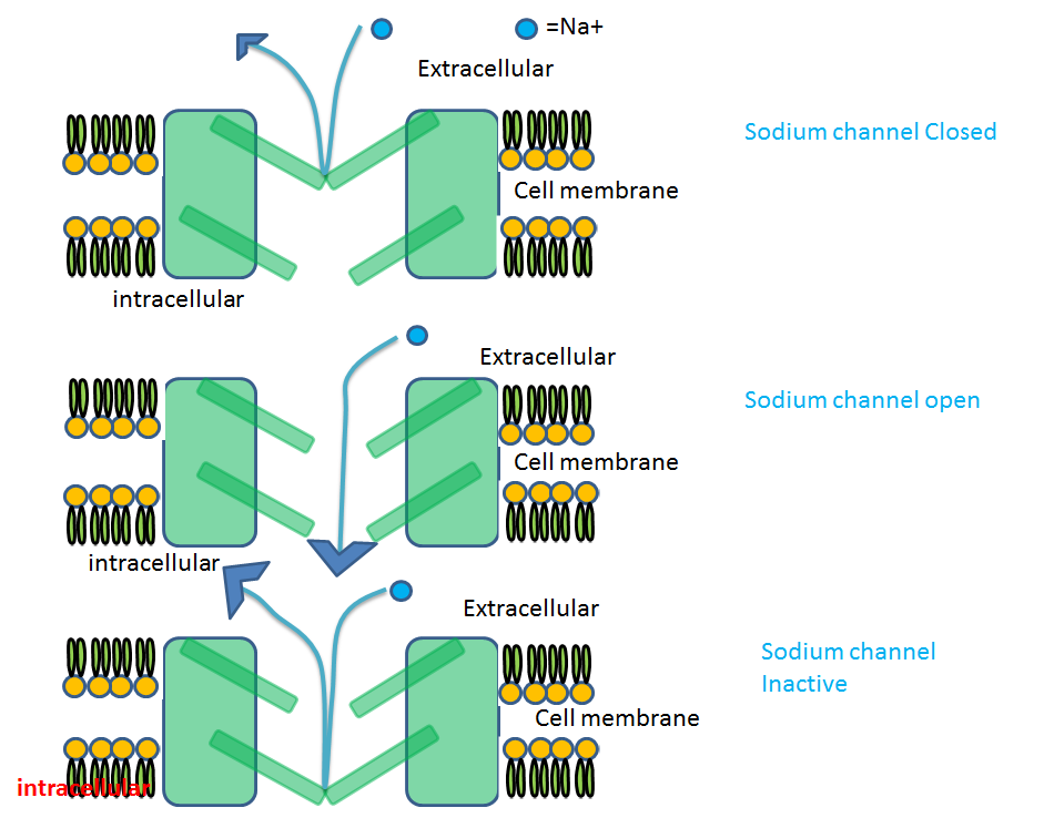 페니토인은 나트륨 채널의 비활성 형태에 우선적으로 결합한다. 결합된 약물이 비활성 채널로부터 해리되는 데 시간이 걸리기 때문에 시간 의존적 채널 차단이 발생한다. 비활성 채널의 비율은 막 탈분극과 반복 발화에 의해 증가하므로, 페니토인 나트륨에 의한 비활성 상태로의 결합은 전압, 사용 및 시간 의존적 나트륨 의존성 활동 전위 차단을 생성할 수 있다.[42]