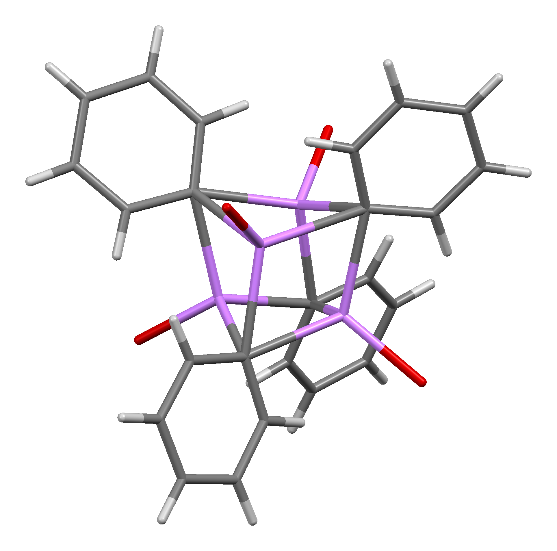 페닐리튬은 단사정 결정을 형성하는 유기리튬 화합물이다. 고체 페닐리튬은 이량체 Li2Ph2 서브유닛으로 구성된 것으로 설명할 수 있다. Li 원자와 페닐 고리의 ''이파'' 탄소는 평면 사원환을 형성한다. 페닐 그룹의 평면은 이 Li2C2 고리의 평면에 수직이다. 이러한 페닐리튬 이량체와 인접한 이량체의 페닐 그룹의 π-전자가 추가적인 강한 분자 간 결합을 일으켜 무한 중합 사다리 구조를 형성한다.[7]