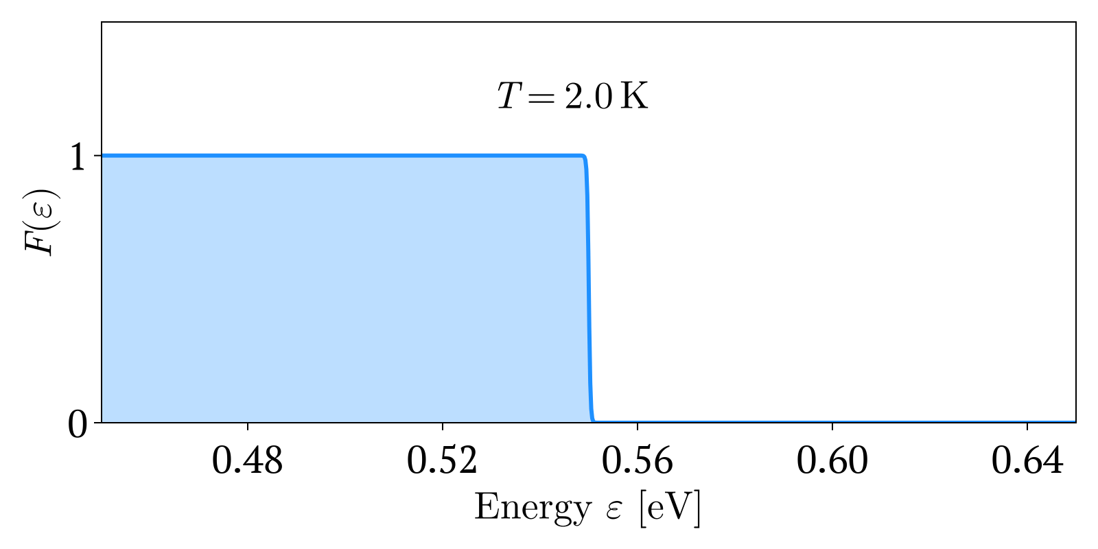| 함수 형태 | f(ε) = 1 / (exp((ε - μ) / kT) + 1) |