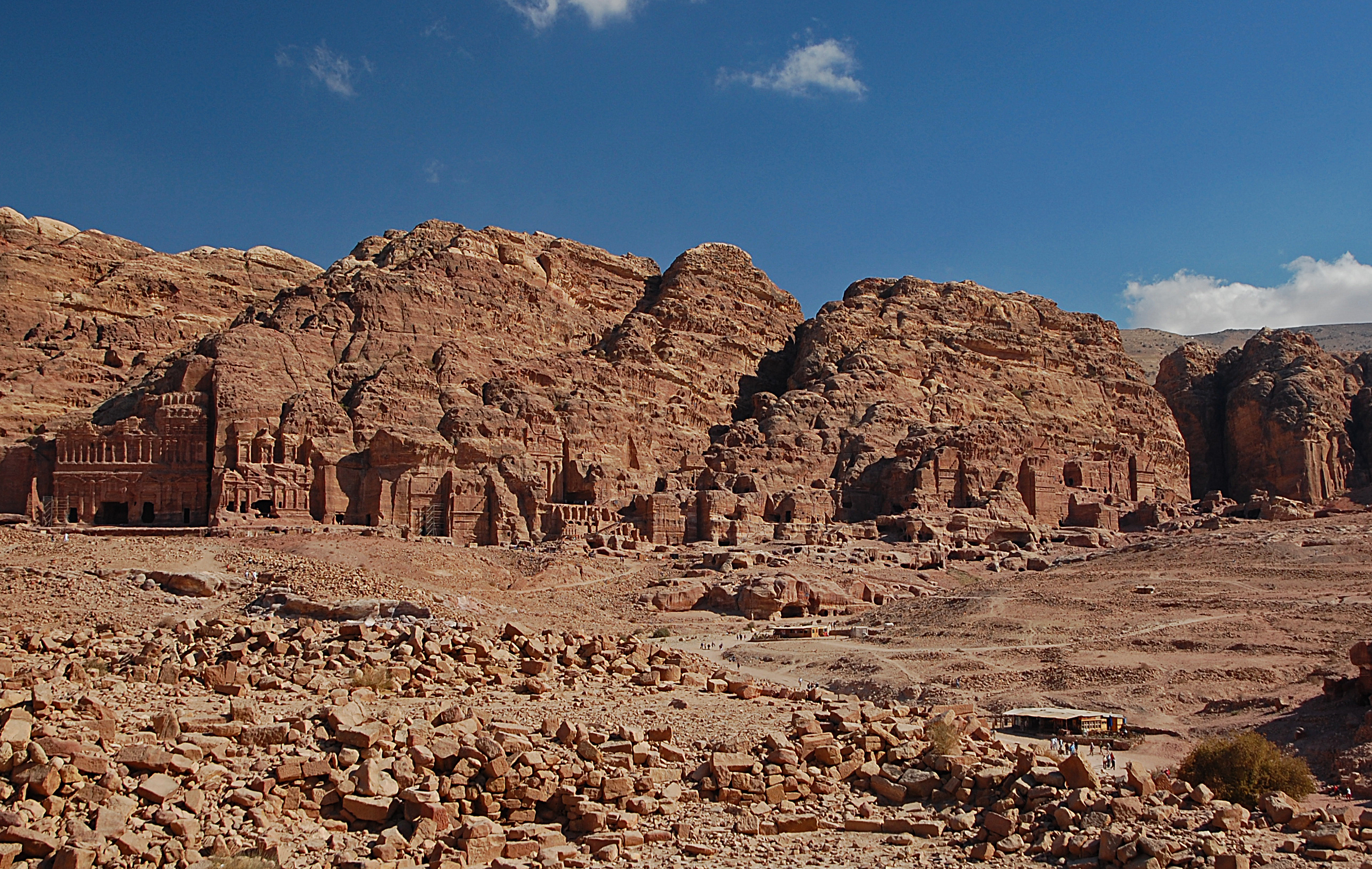 페트라는 서쪽의 가자, 북쪽의 다마스쿠스, 홍해와 가까워 중동에서 사람과 물건이 오가는 요충지였다. 나바테아인의 수도이자 사막을 이동하던 대상(隊商)의 중계 기지였다고 전해진다.[118]