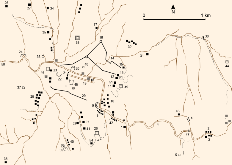 2016년, 고고학자들은 위성 영상과 드론을 사용하여 이전에는 알려지지 않았던 매우 큰 기념비적인 구조물을 발견했다. 기원전 150년경으로 추정되는 이 구조물은 도시 주요 구역 외부에 위치하며, 도시와 가시적인 관련이 없다. 동쪽에 기념비적인 계단이 있는 거대한 184by 플랫폼으로 구성되어 있고, 큰 플랫폼은 비교적 작은 건물(28by)이 얹혀진 약간 더 작은 플랫폼을 둘러싸고 있었으며, 이 건물은 계단을 향해 동쪽을 바라보고 있었다. 이 구조물은 수도원 단지에 이어 두 번째로 크며, 의례적인 기능을 했을 것으로 추정된다.