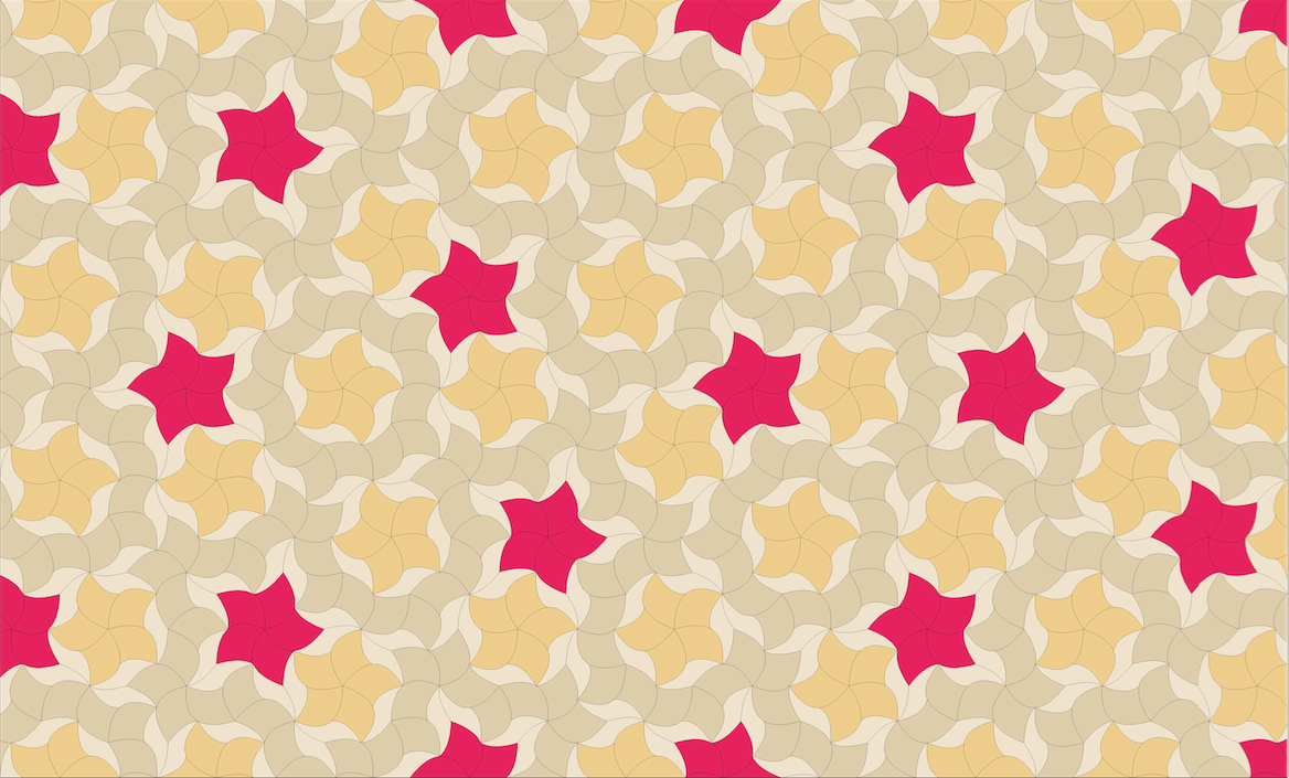 - 타일은 정오각형과 관련된 모양(따라서 황금비와 관련됨)으로 구성된다.