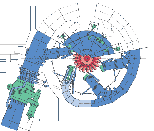 장점 | 높은 낙차에 효율적임 구조가 비교적 간단함 유지 보수가 용이함 |