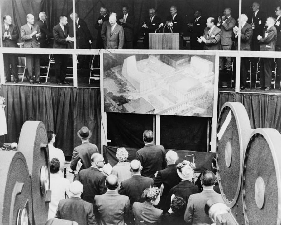 같은 해 11월 18일, 법무장관 로버트 F. 케네디는 명예 학위를 받고 포덤대학교 법학대학 건물 헌정식에서 연설하며 "포덤의 이상, 전통 및 교수진"에 경의를 표했다.[33] 그는 법무장관으로서 "북미에서 포덤대학교 법대 졸업생을 가장 많이 고용하는 사람"이라는 특권을 누렸다고 말했고, "우리가 아는 세상은 앞으로 무엇이 있을지에 대해 몰두하고 있지만, 위협이 우리의 모든 생각과 두려움을 침투할 수 있을 때, 이러한 건물과 프로그램이 미래를 맞이하기 위해 매일 일어서는 것을 보는 것은 안심이 됩니다. 그것은 용기와 결의의 표시입니다."라고 덧붙였다.[33] 1964년 11월 2일, 상원 선거 운동 중 로버트 F. 케네디는 다시 포덤을 방문하여 로즈힐 체육관에서 연설했다.[34][35]