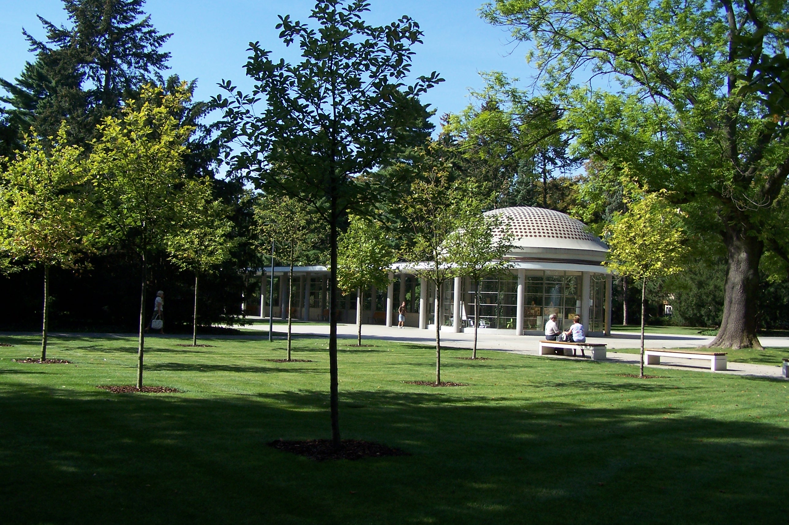 현대적인 콜로네이드가 있는 넓은 스파 공원도 도시 유산 지역의 일부이다. 공원의 가장 오래된 부분은 건축가 프란티셰크 얀다의 설계에 따라 이전 영지 공원 부지에 조성되었으며, 점차적으로 더 많은 부분이 추가되어 확장되었다. 1938년에 건설된 리벤스키 교수의 유리 콜로네이드는 광천수 샘 위에 세워졌다.[14]
