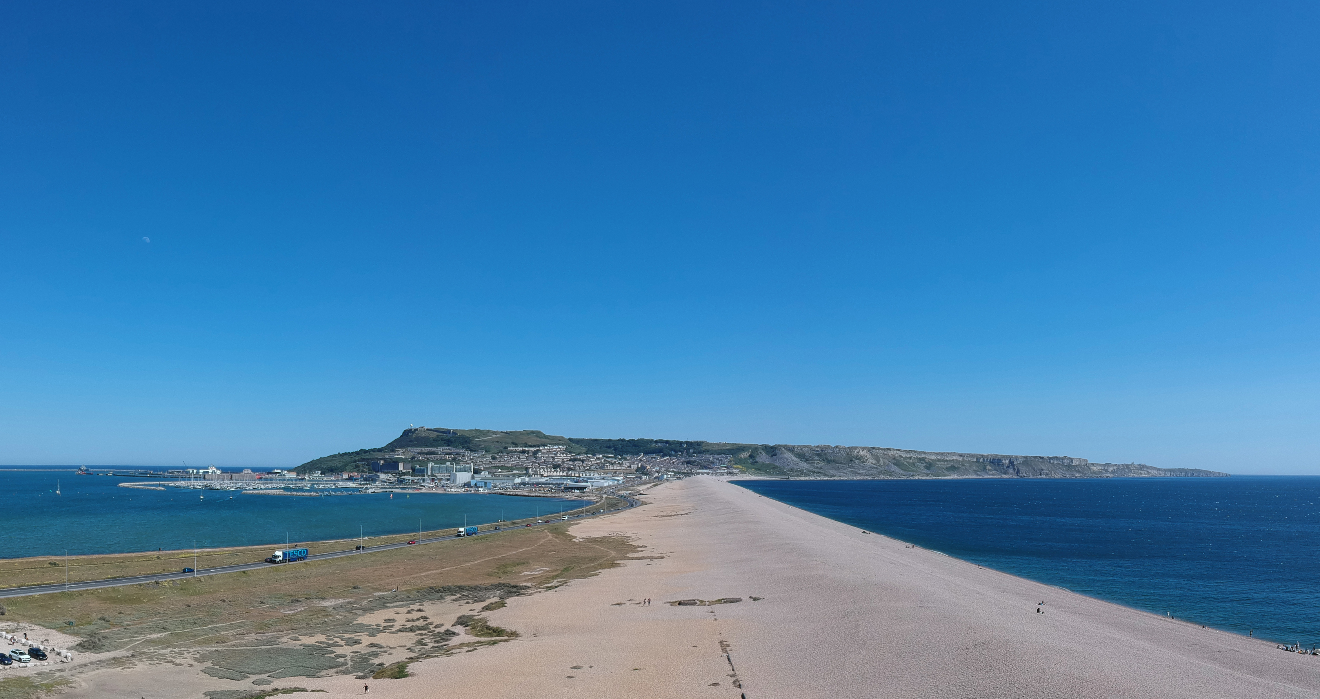 포틀랜드 렛지(Portland Ledge)는 잉글리시 해협(English Channel)으로 뻗어 있는 포틀랜드 석의 수중 연장선으로, 해협의 깊이가 20m~40m인 곳이다. 조류는 이 지형에 의해 교란되며, 깊이 10m에 길이 2.4km로 포틀랜드 빌 남쪽에서 소위 포틀랜드 레이스(Portland Race)라고 불리는 조류가 발생한다.[56] 이 해류는 조석 주기 동안 짧은 시간 동안만 멈추며, 사리 때에는 2m의 조수 간만의 차에서 4m/s에 이를 수 있다.[56]4. 기후