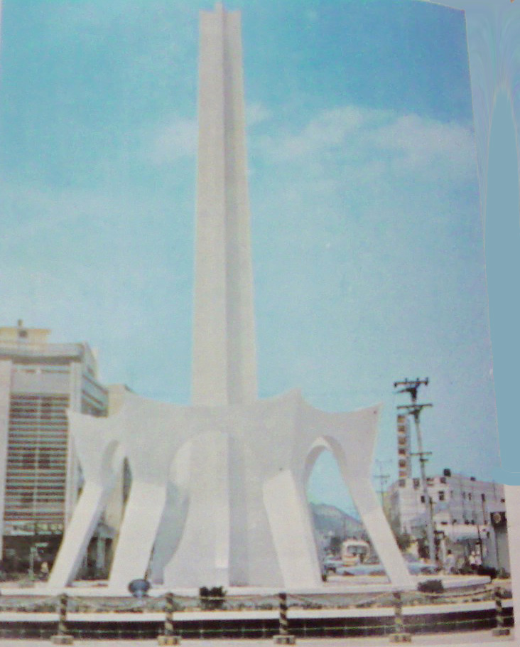 오거리에 세워진 포항시민탑. 현재는 철거되었다.
