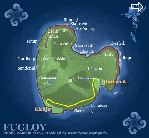 옛 페로 제도 문화에서 트롤은 페로 제도의 신화에서 큰 역할을 했다. 푸글로이는 한때 트롤이 살고 있던 떠다니는 섬이었다고 한다. 사람들은 여러 번 섬에 접근하려 했지만, 시도할 때마다 트롤은 보트에 탄 사람들에게 돌과 저주를 던졌다. 오랜 시간이 지나자 사람들은 시도하는 것에 지쳐 트롤에게 섬을 그냥 내버려두려 했다. 그러나 그들 중 한 명인 사제가 포기하기 전에 한 번 더 시도하고 싶어 했다.