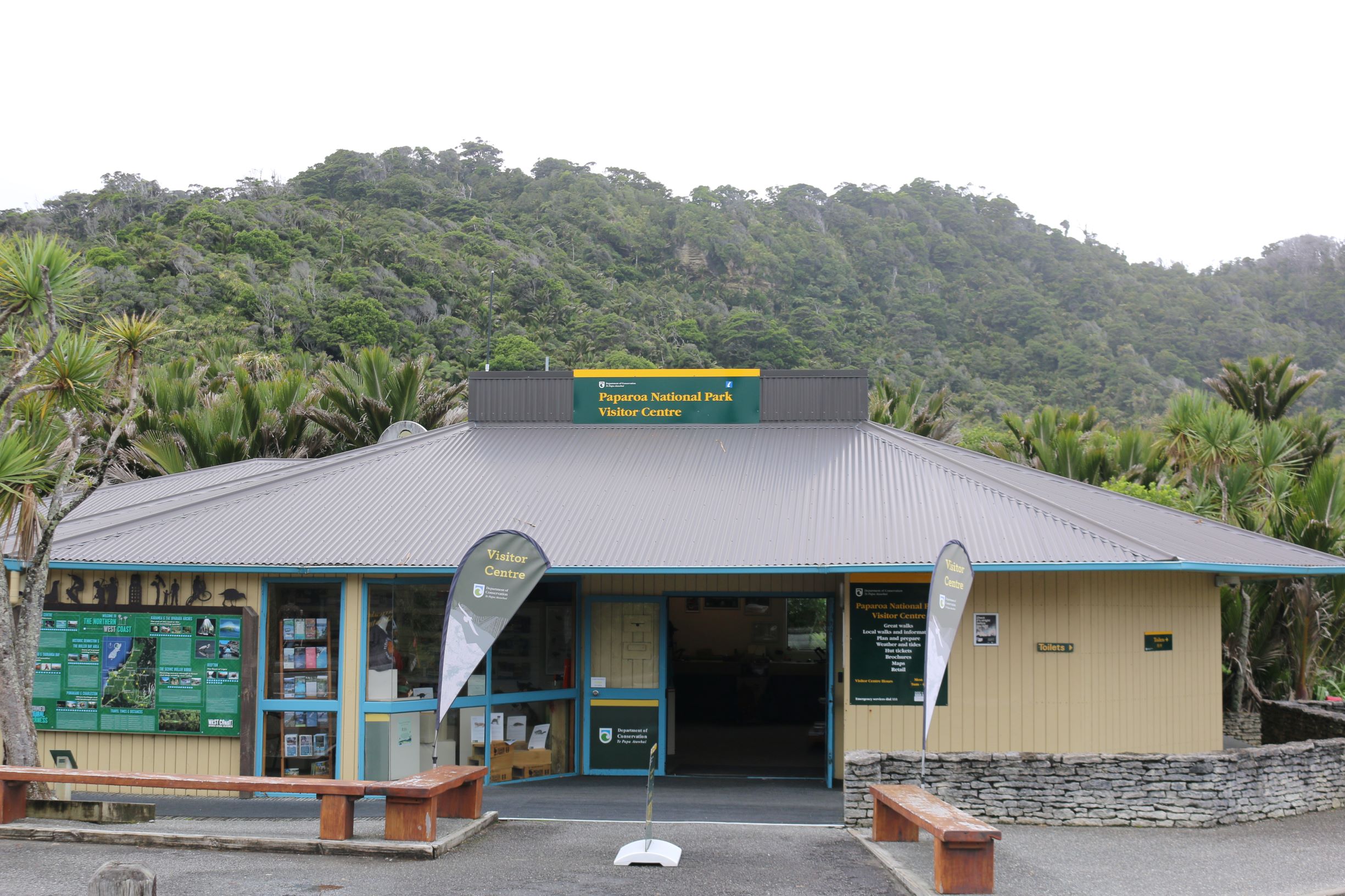 파파로아 국립공원 방문자 센터는 팬케이크 바위 & 블로우홀 입구 맞은편 돌로마이트 포인트에 위치해 있다.