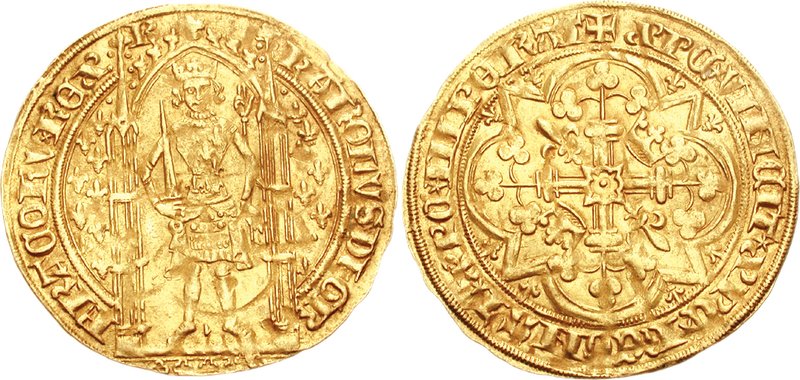 프랑스의 샤를 5세는 안정적인 화폐를 포함한 개혁 정책을 추진했다. 1365년 칙령으로 제정된 ''드니에 도르 오 플뢰르 드 리스''(denier d'or aux fleurs de lis)는 앞면에 천막 아래에 서 있는 왕의 모습이 그려져 있었고,[6] 1 리브르 투르누아의 가치를 지녔으며, ''프랑크 à 피에''(franc à pied)로 알려져 있다.[6] 니콜 오레스므의 이론에 따라 샤를 5세는 조상들보다 더 질 좋은 금으로 적은 수의 동전을 주조했다. 프랑은 1 리브르 투르누아에서 안정적인 화폐와 관련을 맺게 되었다.[8]