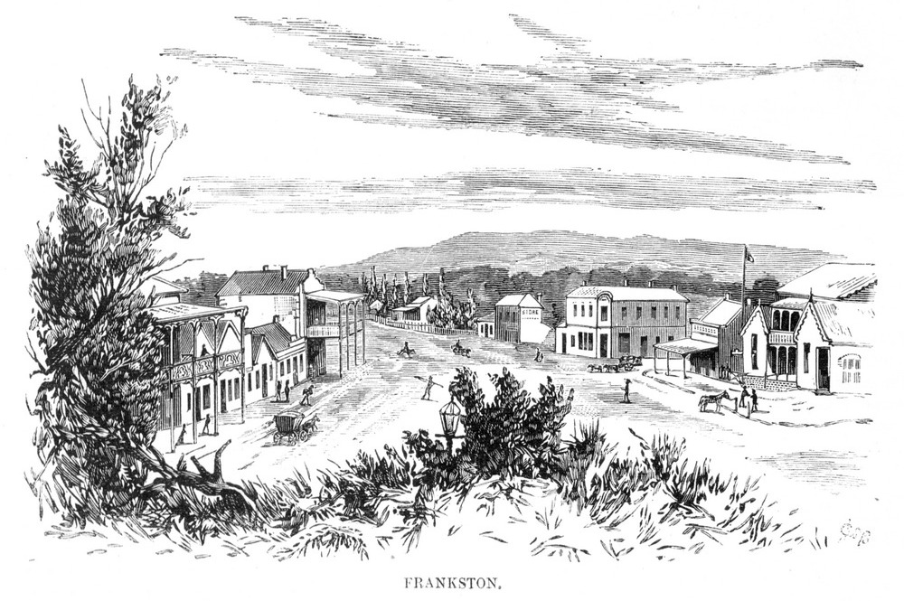 1854년 5월 29일, 새로운 마을 프랭크스턴에 대한 최초의 공식적인 농지 판매가 이루어졌다.[35][2][22] 프랭크스턴은 그해 4월 말에 "샘이 잘 공급되어...물의 냄새와 맛이 놀랍다"고 공시되었다.[22][23] 1854년 말, 멜버른으로 가는 도로는 브라이튼에서 프랭크스턴(현재 네피언 고속도로)까지 연장되었으며, 캐너눅 크릭과 모디알로크 크릭에 교량이 건설되었다.[44]