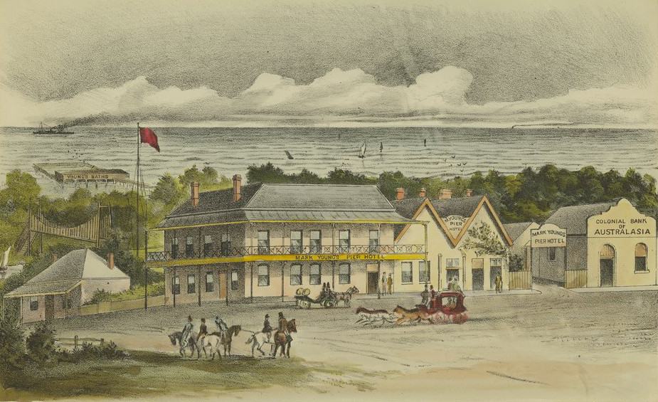 1854년 5월 29일, 새로운 마을의 첫 토지 판매가 이루어졌고, 같은 해 12월 12일 사무엘 팩햄은 프랭크스턴 호텔 설립 허가를 받았다.[45] 이 호텔은 현재 데이비 스트리트와 니피언 하이웨이 북서쪽 모퉁이(현재 피어 호텔 부지)에 있었다.[46][47][48][49] 팩햄은 호텔을 시골 휴양지로 홍보하며, 캥거루 추적자를 고용하고 호텔에서 사냥 원정을 조직했다.[50]