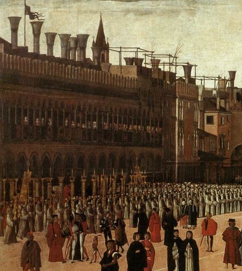 젠틸레 벨리니의 ''성 마르코 광장의 성체 행렬''(1496)에서 볼 수 있듯이, 프로쿠라티에 베키에는 원래 1층에는 임대 상점, 위에는 아파트가 있는 2층 건물이였다.[15]