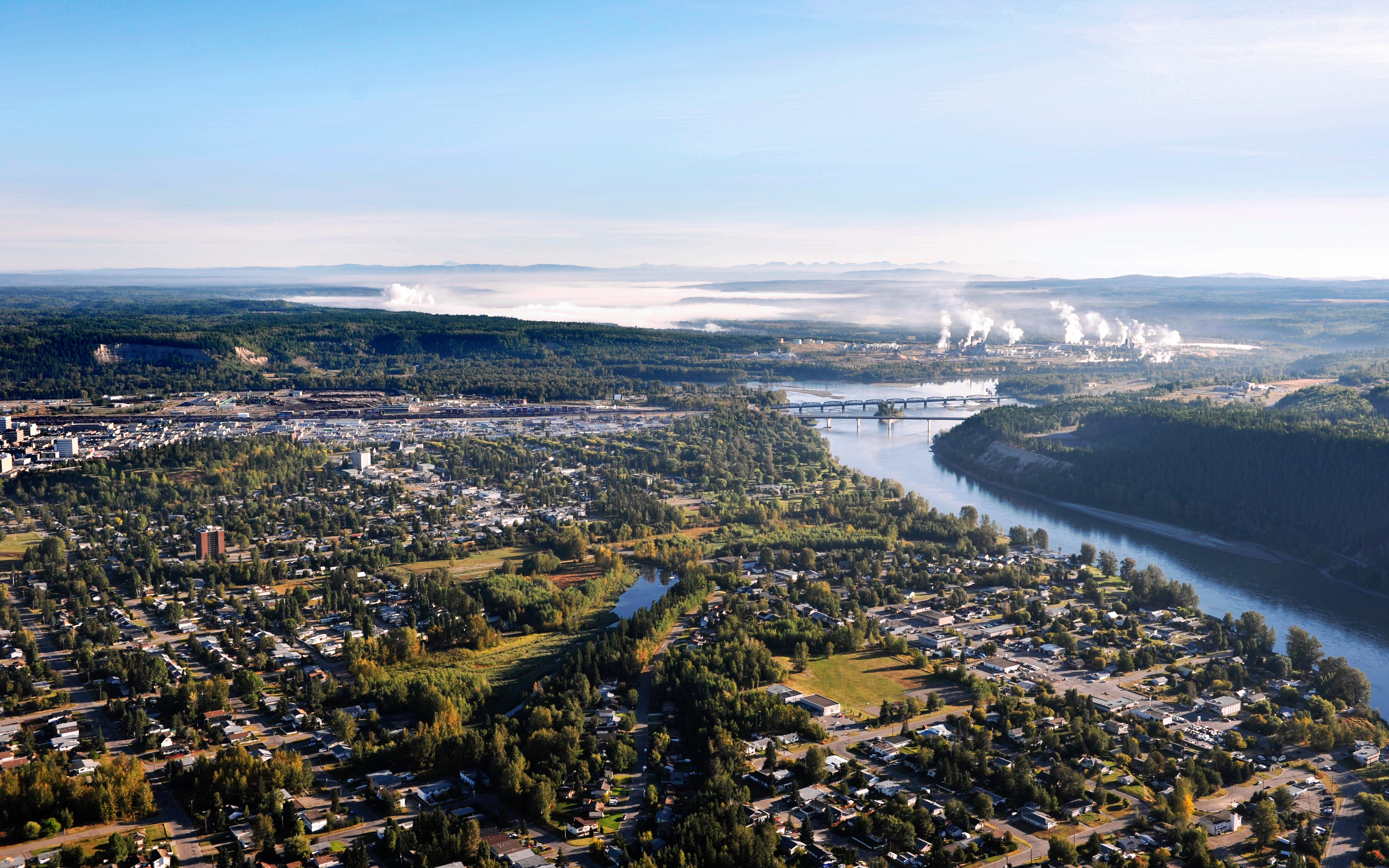 1964년에는 첫 번째 펄프 공장인 프린스 조지 펄프 앤 페이퍼가 건설되었고, 1966년에는 노스우드 펄프와 인터컨티넨탈 펄프가 추가로 건설되었다.[26] 1975년, 프린스 조지는 북쪽의 하트 지역, 남쪽의 파인뷰, 동쪽의 옛 사우스 포트 조지 타운을 포함하도록 경계를 확장하고 통합했다.
