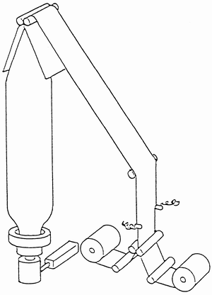 - 평평한 텐터 프레임: 풀림 전에 압출 필름을 늘인다.[3][4]