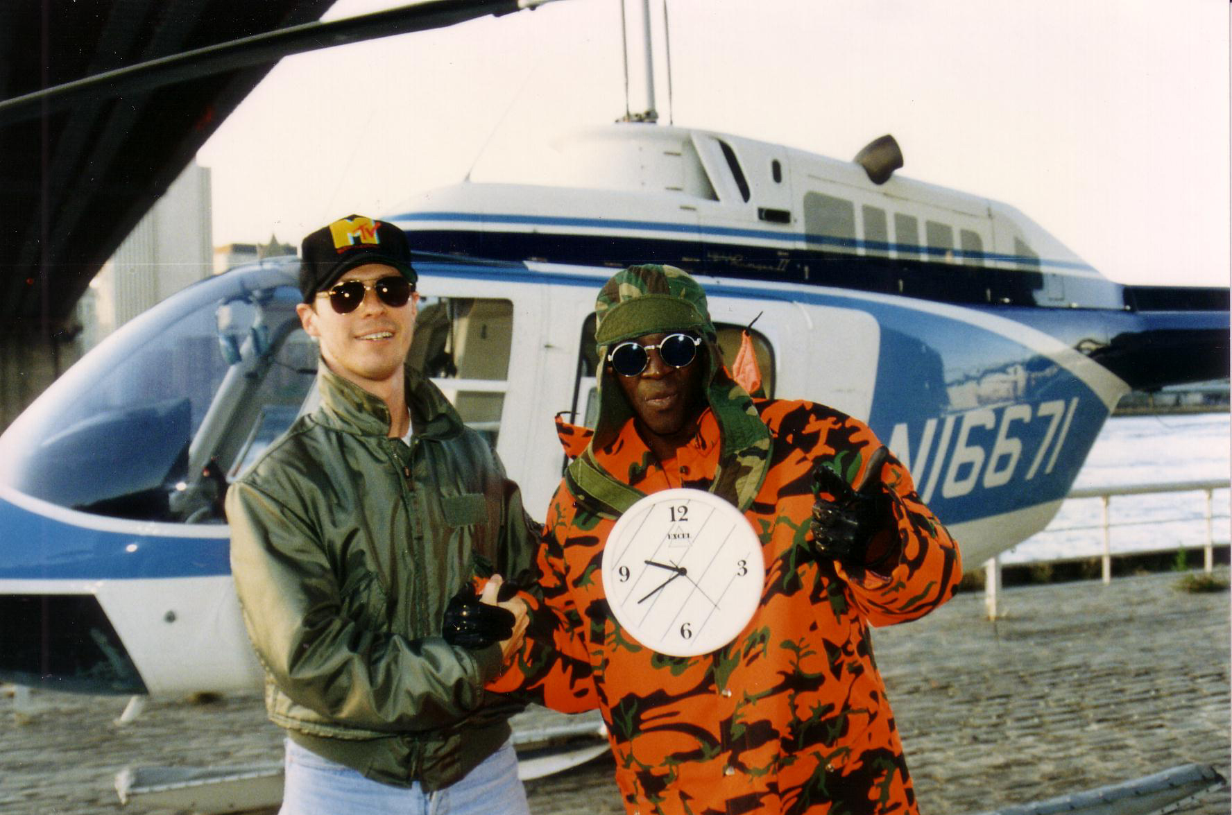 플레이버 플래브와 헬리콥터 조종사 레이 맥코트, 뉴욕에서 MTV 촬영 중