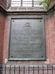 플리머스 식민지는 훗날 필그림으로 알려지게 된 사람들에 의해 개척되었다. 이 집단은 존 로빈슨 목사, 성직자 윌리엄 브루스터, 윌리엄 브래드퍼드가 이끌었으며, 종교 분리파 신도의 일부였다.[215] 1604년 햄프턴 회의에서 제임스 1세는 청교도와 개신교 분리파를 바람직하지 않은 것으로 선언했고, 1607년 요크 대주교는 몇몇 신도의 집을 습격하여 감옥에 수감했다.[215] 이 때문에 신도들은 1609년 잉글랜드를 떠나 네덜란드로 이동하여, 처음에는 암스테르담, 그 다음에는 레이던에 정착했다.[215]레이던에서 신도들은 신앙의 자유를 얻었지만, 네덜란드 사회에 익숙해지기는 어려웠다. 스크루비 마을은 농업 중심이었던 반면, 레이던은 산업 중심지여서 필그림은 삶의 속도를 따라가기 힘들었다. 또한, 아이들은 네덜란드의 관습과 언어에 익숙해져 갔다. 1618년 윌리엄 브루스터가 잉글랜드 왕과 잉글랜드 성공회를 비판하는 문서를 간행하자, 잉글랜드 당국은 브루스터를 체포하려 했다. 브루스터는 체포를 피했지만, 이 사건은 신도들에게 잉글랜드에서 더 멀리 떨어진 곳으로 이동해야 한다는 동기를 주었다.[215]