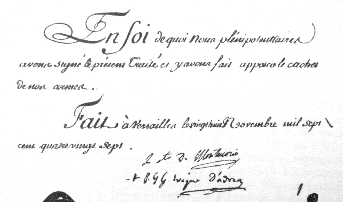 11월까지 그의 끊임없는 압력은 효과가 있었다. 1787년 11월 21일, 베르사유 조약이 프랑스와 응우옌 아인의 이름으로 코친차이나 사이에 체결되었다. 풀로 콘도르와 투란(다낭)에서의 항구 접근 권한을 대가로 4척의 프리깃함, 1650명의 완전 무장한 프랑스 군인, 250명의 인도 세포이가 약속되었다. 드 프렌이 원정의 지도자가 될 예정이었다.[34]