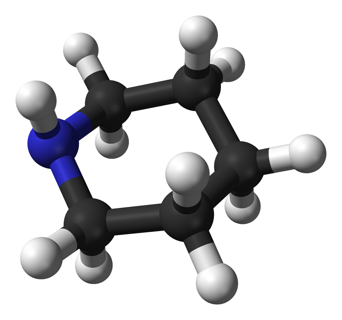 피페리딘은 사이클로헥세인의 한 탄소를 질소로 치환한 구조를 가진 환상 2급 아민으로, 무색 액체이며 특유의 악취를 지닌다. 다양한 화학 반응에 참여하며, 용매, 염기, 고무 가황 촉진제 등으로 사용된다. 피페리딘은 후추 등 자연에서 발견되며, 많은 알칼로이드의 구조에 포함되어 있다. 또한, 이카리딘, 파록세틴, 메틸페니데이트, 미녹시딜 등 다양한 의약품의 구성 성분으로 활용된다. 피페리딘은 펜시클리딘의 불법 제조에 사용되어 불법 마약 및 향정신성 물질 거래에 관한 국제 연합 협약에 따라 규제받는다.