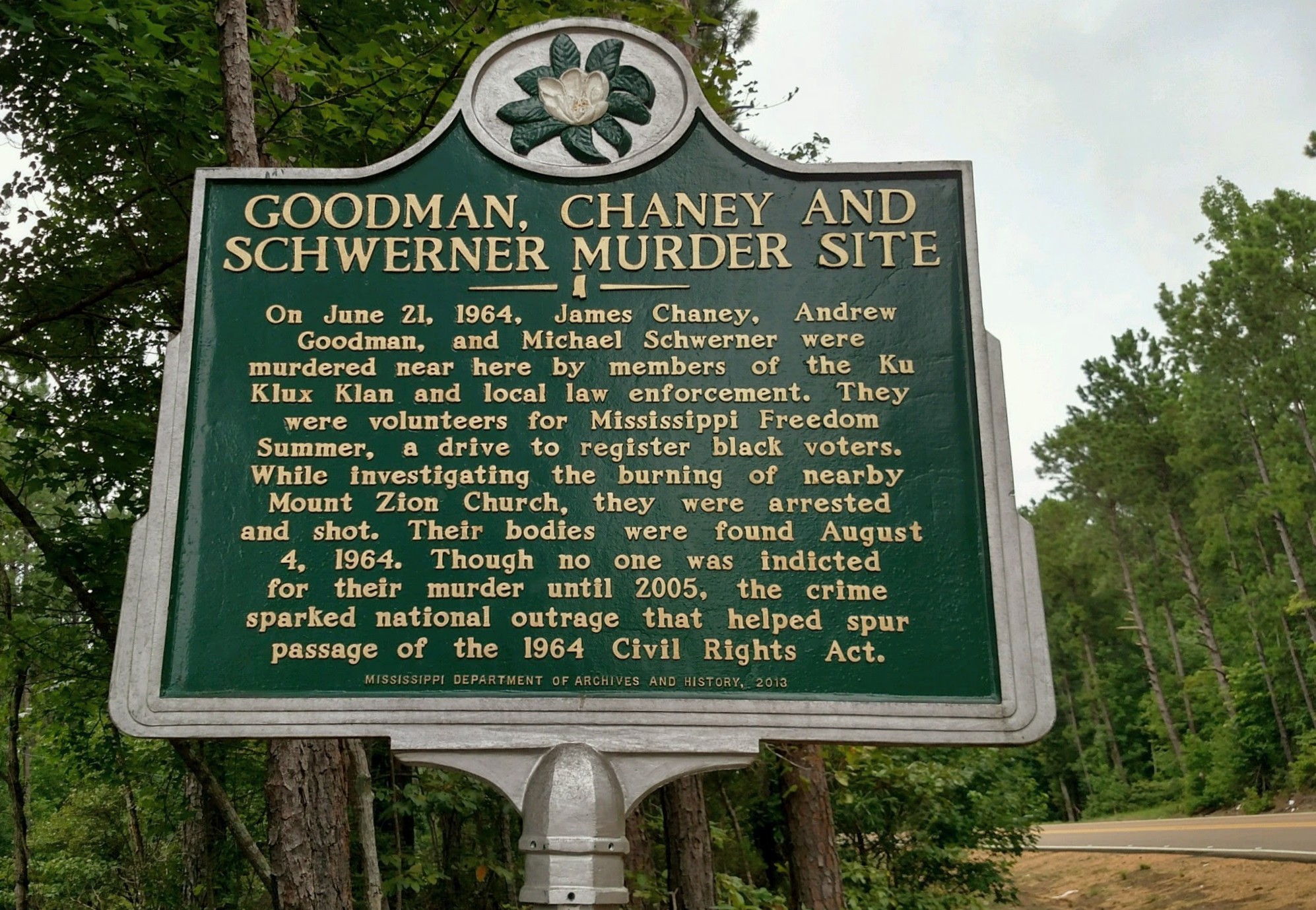 20세기 중반, 미시시피주는 다른 남부 주들과 마찬가지로 오랫동안 흑인들의 참정권을 박탈하고 인종 차별과 짐 크로우법을 적용하면서 시민권 운동의 격전지가 되었다. 1964년 6월 필라델피아에서는 시민권 운동가인 제임스 체이니(메리디안 출신의 21세 아프리카계 미국인), 앤드루 굿맨(활동가)(뉴욕시 출신의 20세 유대인 인류학 학생), 마이클 슈워너(뉴욕 출신의 24세 유대인 CORE 조직자이자 전 사회복지사)의 살인 사건이 일어났다.[6] 이 사건은 아프리카계 미국인들의 헌법적 권리를 확보하기 위해 시민권 운동가들이 감수해야 했던 위험을 보여주었다.쿠 클럭스 클랜 회원들(네쇼바 카운티의 부 보안관인 세실 프라이스 포함)은 이 세 젊은이를 감옥에서 풀어준 뒤, 외딴 곳으로 데려가 살해하고 흙으로 만든 댐에 묻었다. 이들의 시신은 FBI 수사와 전국 언론의 주목을 받은 후에야 발견되었다.[6] 이 사건으로 인한 전국적인 분노는 1964년 시민권법과 1965년 투표권법의 의회 통과를 위한 지지를 얻는 데 도움이 되었다. 이 살인 사건과 관련된 음모는 "미시시피 버닝" 재판인 ''미국 대 프라이스''로 이어졌다.