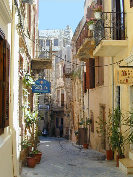 구시가지의 경계는 부분적으로 파괴된 옛 베네치아 성벽(과 방벽)이며, 이 지역에서 발전한 모든 문명의 요람이었다. 중앙부는 카스텔리(Kasteli)라고 불리며 신석기 시대부터 거주해 왔다(고대 키도니아(Kydonia)). 바닷가 바로 옆 작은 언덕에 위치하여 안전한 위치, 항구와의 근접성, 남쪽의 비옥한 계곡과의 인접성으로 인해 항상 정착에 이상적인 장소였다. 오늘날에는 구역 서쪽의 인근 지역보다 조금 더 조용하다. 카스텔리 동쪽 부근의 스플란치아(Splantzia) 지역 또한 대부분 손상되지 않고 남아 있다.