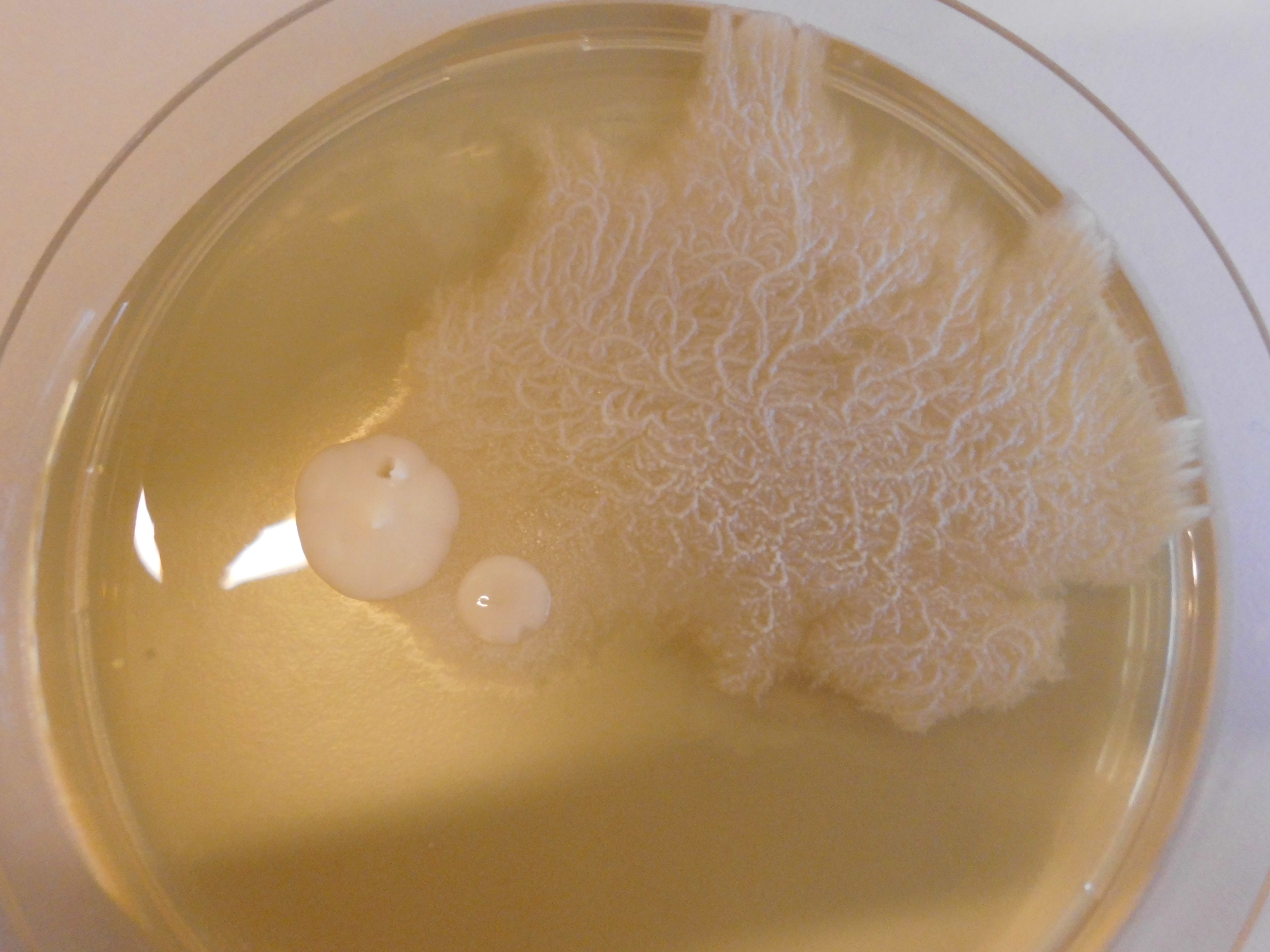 한천 표면을 작업대로 사용하는 경우가 있는데, 수생 불완전균의 분리에는 흐르는 물에서 모은 시료를 현미경으로 관찰하여 포자를 찾아 마이크로 피펫으로 흡인하여 한천 배지 표면에 떨어뜨린다. 백금선으로 포자 근처의 한천면에 살짝 접촉하면 한천 표면에 미약하게 존재하는 유리 수분이 한천면과 바늘 사이에 채워져 포자는 그 물에 끌려 들어간다. 한천 표면을 바늘로 끌면 포자는 바늘 끝에 부착하여 이동하므로, 시료를 떨어뜨린 지점에서 수 mm 떨어진 곳으로 이동시키면 발아한 포자를 단독으로 떼어낼 수 있다.
