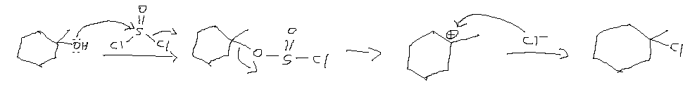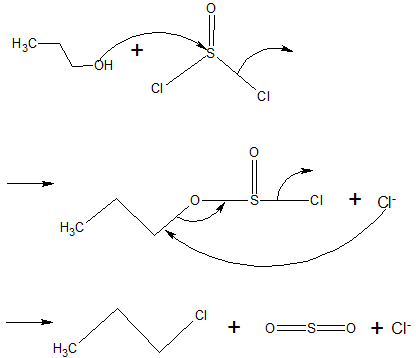 알코올의 하이드록시기(-OH)를 할로젠으로 치환하여 합성하는 방법은 다음과 같다.