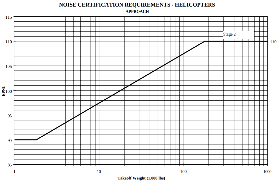 미국에서는 더 시끄러운 1단계와 조용한 2단계 헬리콥터를 모두 허용한다.[25] 가장 조용한 3단계 헬리콥터 소음 기준은 2014년 5월 5일에 발효되었으며, ICAO 8장 및 11장과 일치한다.[26]