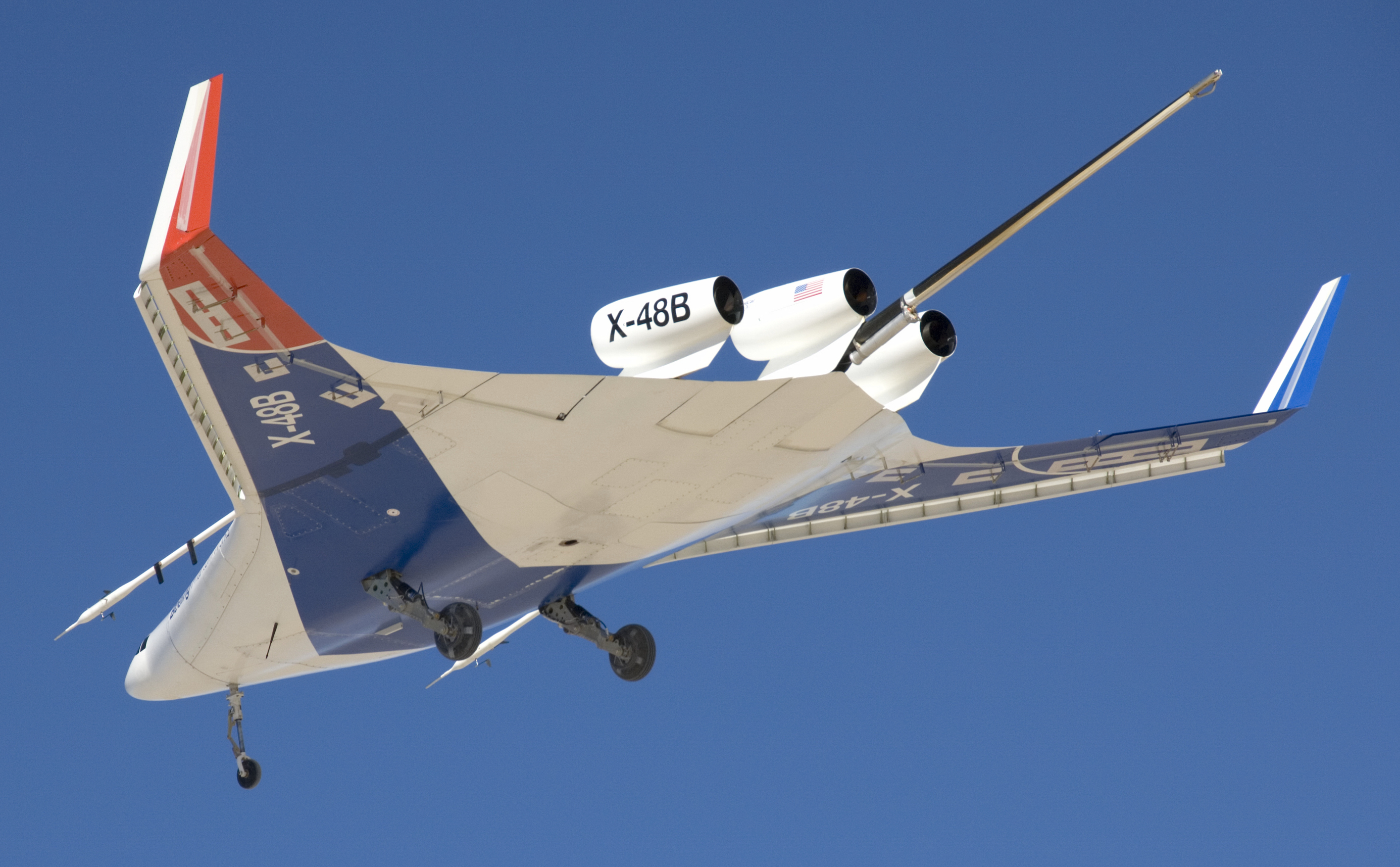항공기 엔진이 날개 아래에 위치하는 경우 소음 감소 능력이 제한될 수 있다. 미국 항공우주국(NASA)은 2026~2031년까지 4단계(Stage 4) 제한치보다 누적 20~30dB 감소를 예상하지만, 공항 경계 내에서 항공기 소음을 유지하려면 최소 40~50dB 감소가 필요하다.[32] NASA는 날개 위 및 동체 중앙에 위치한 엔진 덮개(nacelle)가 혼합익기의 경우 30~40dB, 심지어 40~50dB까지 소음을 줄일 수 있다는 것을 발견했다.[32]