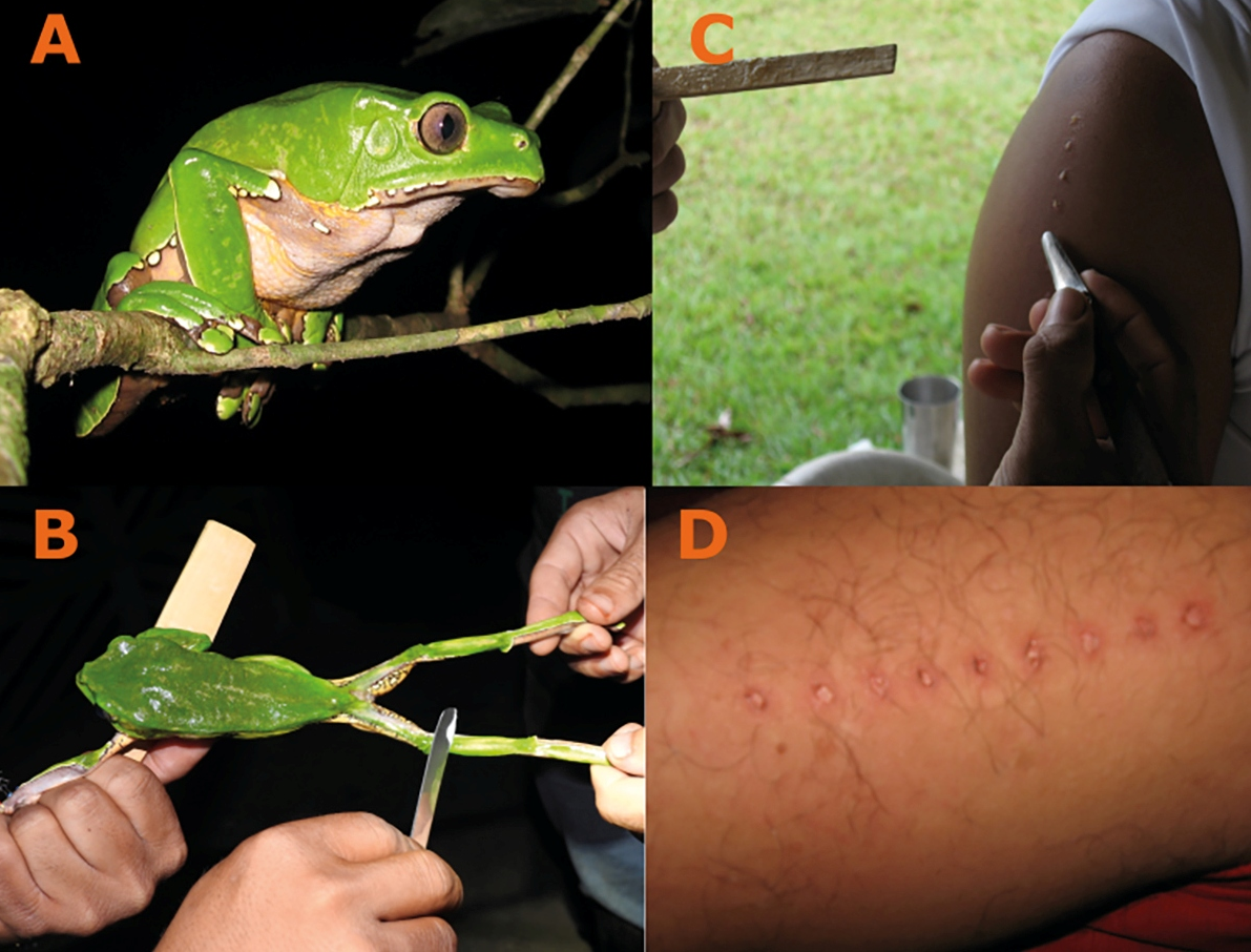 - '''칸보 개구리 치료''' : 미치바타 제시카 등이 받는 해독 요법으로, 개구리 독을 이용해 구토를 유발하는 치료법이다.[190][191] 드물게 사망 사례도 보고되며, 미치바타는 이를 "훌륭한 약"이라고 표현했다.[190][192][193]