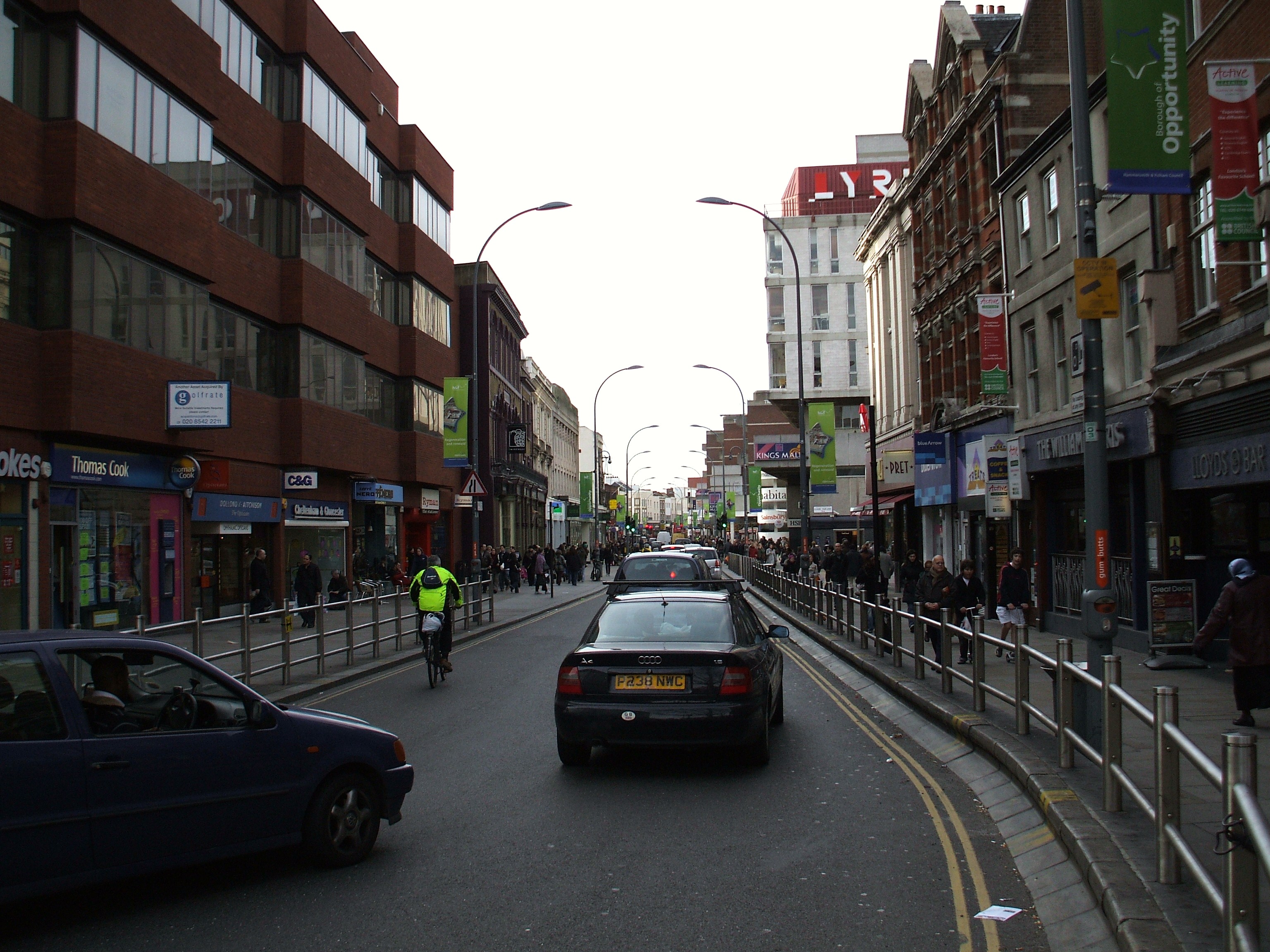 해머스미스 중심부에는 런던 지하철역이 두 곳 있으며, 모두 해머스미스라는 이름을 사용한다. 하나는 해머스미스 시티 선과 서클 선이 운행하며, 다른 하나는 피카딜리 선과 디스트릭트 선이 운행한다. 뒤에 언급된 역은 "더 브로드웨이 센터"라고 알려진 대규모 사무실, 소매점, 교통 시설이 결합된 개발의 일부이다.3. 3. 주요 거리